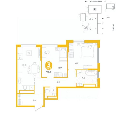 Квартира располагается в ГК "Чистые Пруды" от "Паритет девелопмент". Это флагманский проект компании в Тюмени. Расположение вдали от шумных улиц и оживленного центра создает ощущение жизни на природе и окружает тишиной и спокойствием. Есть вся необходимая социальная и коммерческая инфраструктура: магазины и сфера услуг на первых этажах. Школы, сады, поликлиника, парки в шаговой доступности. Квартал строится в районе Новой Лесобазы. Рядом выезд на объездную, что существенно экономит время. Поездка до центра города на автомобиле занимает 15-20 минут. Городские кварталы "Чистые Пруды" сформирован из домов переменной этажности и многоуровневых паркингов. Ввод 1 очереди строительства запланирован на II кв. 2028 года. Всё благоустройство квартала представлено двумя функциональными зонами: приватная внутри дворовая и общественная. Каждый закрытый двор имеет выход на единую променадную зону - бульвар. Концепция благоустройства основана на принципе модульности, что формирует основную идею приватности. Приватность проекта подчеркивает его особенный климат внутри. Модульное благоустройство позволит максимально эффективно использовать пространство двора и удовлетворить потребности различных категорий жителей. В квартирах базово выполнена улучшенная черновая отделка, которая включает в себя: выровненные стены, стяжка пола с шумоизоляцией, горизонтальная разводка отопления, установлены счетчики с телеметрией, окна с 5-камерным профилем и надежные входные двери. При желании можно добавить ремонт от застройщика и включить его в стоимость ипотеки, что позволит сэкономить на стройматериалах и переехать сразу после получения ключей. Характеристики квартиры: этаж - 14 количество комнат - 3 номер помещения - 412 площадь квартиры - 64,9 кв.мГармоничные пропорции и большие окна наполняют пространство светом, создавая уютную атмосферу. Умное зонирование позволяет удобно организовать как рабочую, так и жилую зоны, что особенно важно для современных жителей. Санузел спроектирован с учетом всех потребностей: здесь есть ванна и место для стиральной машины. Каждый метр квартиры используется с максимальной эффективностью, что делает эту планировку отличным выбором для тех, кто ценит комфорт и удобство.