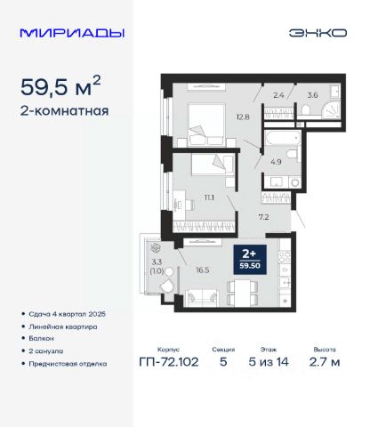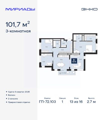 Дом монолитный, черырехподъездный, переменной этажности, от 7 до 23 этажей. Квартира находится в 1-й секции высотой 23 этажа в корпусе ГП-4. На этаже 8 квартир. В подъезде 2 пассажирских и 1 грузовой лифт. Окончание строительства - 4 квартал 2025 года. Оформление сделки по договору долевого участия.