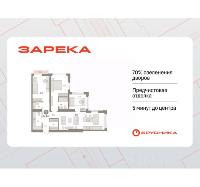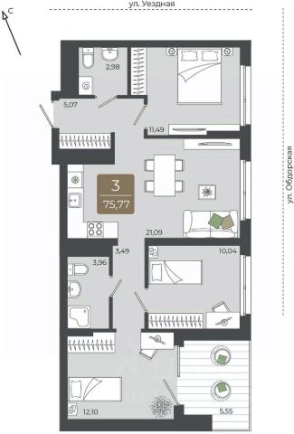 Трехкомнатная квартира от застройщика в ЖК "Мидгард на Уездной" на 14 этаже. Квартира без отделки, новый собственник может сделать ремонт по своему проекту. Общая площадь: 75.77 кв.м., жилая: 33.63 кв.м., площадь просторной кухни-столовой: 21.09 кв.м. Комнаты изолированные, все окна выходят на одну сторону. В квартире одна лоджия, один совмещенный и один раздельный санузел. Высота потолков 2.72 м. Дом монолитный, черырехподъездный, переменной этажности, от 9 до 15 этажей. Квартира находится в 3-й секции высотой 15 этажей в корпусе ГП-1. На этаже 8 квартир. В подъезде 1 пассажирский и 1 грузовой лифт. Окончание строительства - 3 квартал 2027 года. Оформление сделки по договору долевого участия. "Мидгард на Уездной" - современный проект комфорт-класса, расположенный на первой линии Тюменской слободы, с видом на развязку Московского тракта. Он сочетает в себе современные архитектурные решения и комфортное проживание в гармонии с природой. Жилой комплекс находится в перспективном районе, который отличается транспортной доступностью: до крупных торговых центров "Кристалл" и "Колумб" можно добраться за 10 минут, а до центра города - за 15 минут. В шаговой доступности школы, детские сады, торговые центры и парки, что делает локацию идеальной для комфортной жизни. Проектом предусмотрены дома с дизайнерскими входными зонами и планировочными решения для любого сценария жизни с возможностью включить в ипотечный платеж ремонт, мебель и технику от застройщика. Закрытый двор и собственная аллея вдоль жилого комплекса позволят насладиться тишиной вдали от суеты большого города. #z6SCFl