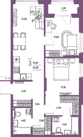 Продажа 3-комнатных квартир на 15 этаже в микрорайоне Харьковская (Центральный) в городе Тюмень