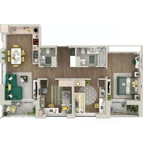 Квартира 2+ с окнами на 2 стороны Самая популярная по спросу квартира это квартира с окнами на 2 стороны света! Здесь идеально все! • Просторная кухня-гостиная с выходом на французский балкон • Детская правильной формы • Два удобных санузла, где вместится все необходимое • Вместительный коридор