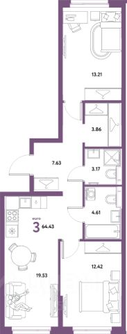 Продаётся 3-комнатная квартира в строящемся доме (Дом Тенерифе (ГП-2Я)), срок сдачи: IV-кв. 2027, общей площадью 64.43 кв.м., на 15 этаже. Новый жилой комплекс "Остров-сад" от Специализированного застройщика "Страна. Коммунистическая" расположен по адресу: г. Тюмень, по ул. Ярославская.