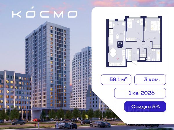 Трехкомнатная квартира с предчистовой отделкой в ЖК "Республики 205" на 15 этаже. Общая площадь: 89.68 кв.м., жилая: 34.2 кв.м., площадь просторной кухни-гостиной: 22.5 кв.м. Квартира угловая, очень светлая, естественная вентиляция при открытии окон. В квартире две лоджии, два совмещенных санузла. Высота потолков 2.7 м. Купить квартиру можно с помощью программ покупки от застройщика Брусника: - ипотека по эксклюзивной ставке с помощью в получении положительного кредитного решения через сервис ипотечный брокер; - квартиры в рассрочку без процентов от застройщика Брусника; - обмен квартиры на новую. Получить одобрение ипотеки или рассрочку, а также осуществить обмен квартир можно онлайн. Дом монолитный, многоподъездный, переменной этажности, от 7 до 16 этажей. Квартира находится в 3-й секции высотой 16 этажей в корпусе 2. На этаже 7 квартир. В подъезде 2 грузовых лифта. Начало строительства - 1 квартал 2024 года. Окончание строительства - 2 квартал 2026 года. Оформление сделки по договору долевого участия. Район Проект расположен в границах улиц Пермякова, Энергетиков, Воровского и Республики. До центра города — 10 минут на машине. Рядом — автомобильная развязка на пересечении улиц Пермякова и Республики. В шаговой доступности есть школы, детские сады, поликлиники, крупный торговый центр, автовокзал и несколько скверов. Проект "Республики 205" — это проект комплексного развития территории, уникальный по своему наполнению. Переосмысляя бывшую территорию завода медицинского оборудования, мы создадим новое место силы — микрорайон, насыщенный деловой, развлекательной, рекреационной, игровой, образовательной и медицинской инфраструктурой. До каждого полезного сервиса здесь можно будет дойти за 15 минут. Локальными центрами "Республики 205" будут общественные пространства — скверы, парки, бульвары и площади. В границах нашего участка мы намерены разместить школу, рассчитанную на 1550 учеников, два детских сада на 300 мест и встроенный детский сад на 100 мест. В одном из цехов бывшего завода расположится креативный кластер "Кузница". Он станет площадкой для нескольких институций — галереи, лектория, книжного магазина-библиотеки, кинобара и точек креативного pop-up-ритейла. Пешеходные бульвары внутри района соединят между собой улицу ресторанов, детские и спортивные площадки, событийную площадь и летний кинотеатр. Идентификатор квартиры по базе застройщика: РСП-02-3-3.