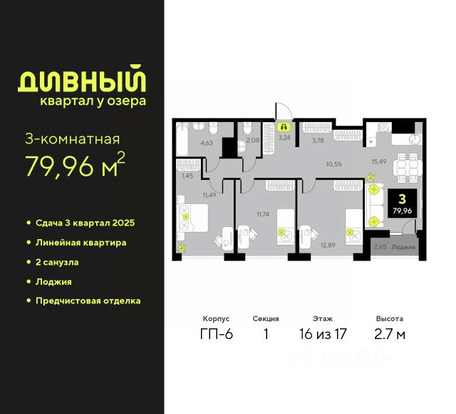 3-комн. квартира с предчистовой отделкой в ЖК "Айвазовский City" на 16 этаже. Общая площадь: 86.04 кв.м., жилая: 39.66 кв.м., площадь просторной кухни-столовой: 22.06 кв.м. Угловая квартира, идеально подойдет любителям тишины и панорамных видов. В квартире один совмещенный и один раздельный санузел. Высота потолков 2.7 м. Дом монолитный, многоподъездный, высотой 24 этажа. Квартира находится в 4-й секции в корпусе ГП-12. На этаже 5 квартир. В подъезде 1 пассажирский и 1 грузовой лифт. Окончание строительства - 4 квартал 2028 года. Оформление сделки по договору долевого участия. Новый жилой район располагается в живописном месте на берегу Туры в центральной части города. Принципиально новое пространство для жизни в центре современного города для тех, чьи мечты сбываются, кто нацелен на постоянный рост, перемены к лучшему для себя и своих близких. Каждая деталь Айвазовский City вдохновляет и заряжает на новые свершения: авторская архитектура, сбалансированная продуманная инфраструктура, дизайнерские дворы со спортивными и детскими площадками, парковые зоны с фонтанами, водный канал, украшающий центральный прогулочный маршрут района и многое другое. В 2019 года проект стал лауреатом престижной премии Urban Awards 2019 в номинации "Лучший строящийся региональный жилой комплекс бизнес-класса". Главная особенность Айвазовский City - соседство разных архитектурных школ в рамках одного дома. Изысканная классика, выразительная эклектика и оригинальный модерн - жить в одном из таких домов настоящий повод для гордости. Айвазовский City это идеальное сочетание комфорта, технологий и развитой инфраструктуры. Вход в подъезд возможен с улицы и со двора. Отправляясь на работу или за покупками, жители могут выйти с внешней стороны дома, а для прогулки с ребенком со стороны двора. Экологически чистые материалы и энергосберегающие технологии, качественное освещение общественных зон, видеонаблюдение по всей территории жилого района (в том числе в подъездах, лифтах и в подземном паркинге), закрытые дворы с доступом только для жителей Айвазовский City. Часть домов в Айвазовский City будут оснащены подземным паркингом. Востребованный в нашем климатическом поясе формат хранения автомобилей защитит собственность владельца в любое время года. Аккредитация в банках: ОАО "Альфа-Банк", ПАО "Газпромбанк", ПАО Банк "ВТБ", "Сбербанк России", АО "ДОМ.РФ" и других. #2mVa39