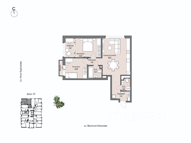 Квартира в счёт первоначального взноса по программе обмена. Квартира с кухней-гостиной и тремя спальнями в Октябрьском на Туре. Особенности планировки: без отделки, вид на реку, свободная планировка, лоджия, мастер-спальня, постирочная. квартиры в нашей базе: ОКТ-08-6-6.16.8. Район Проект расположен на берегу реки, в одном из самых живописных и экологичных районов Тюмени. За последние годы облик района изменился. По соседству с индивидуальной застройкой выросли многоквартирные дома. При проектировании "Октябрьского на Туре" нашей приоритетной задачей стало сохранение природного ландшафта: мы постарались деликатно вписать в него современную архитектуру. Квартал удачно расположен с точки зрения дорожной инфраструктуры. На автомобиле путь до центра города составит 15 минут. Добраться до набережной и главных тюменских достопримечательностей можно и на общественном транспорте. В пешей доступности находится автобусная остановка. Проект По мастер-плану здесь будет восемь домов. Ядро застройки составляют замкнутые кварталы переменной этажности. Их высотность понижается по мере приближения к реке. На углах участка мы разместили башни-доминанты. Одной из достопримечательностей квартала станет парк на Туре — здесь появится зеленая зона протяженностью около 6 километров для пеших и велопрогулок. Смысловая ось квартала — широкая главная улица с высаженными вдоль неё высокими деревьями. Они создают тень и работают как шумо- и пылезащитные экраны. Это место сосредоточения основных пешеходных и транспортных потоков, на сторону которых мы ориентировали большинство коммерческих помещений. Отсюда жители могут свернуть на тихие соседские улицы и попасть на внутриквартальную площадь — ещё одну точку притяжения.Квартира в счёт первоначального взноса по программе обмена. #zZD3me