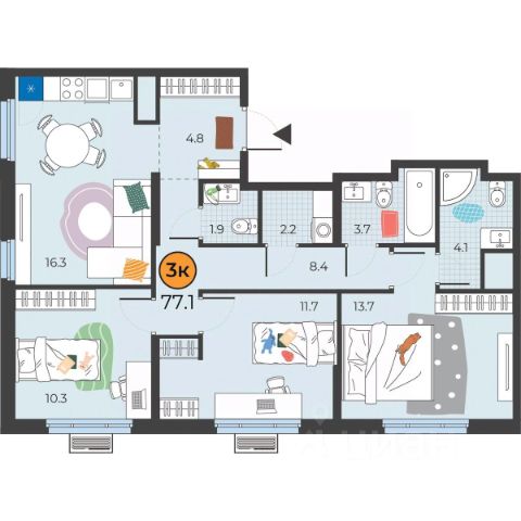 • ✓ В базе Циан 16 3-комнатных квартир на 16 этаже в округе Восточный в городе Тюмень
