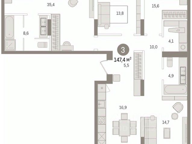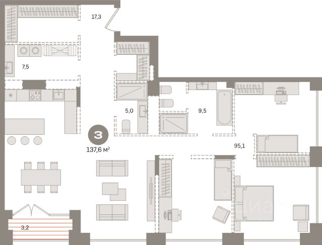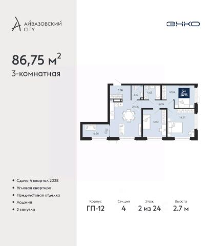 3-комн. квартира с предчистовой отделкой в ЖК "Айвазовский" на 2 этаже. Общая площадь: 100.67 кв.м., жилая: 45.6 кв.м., площадь просторной кухни-столовой: 27.59 кв.м. Квартира - распашонка, без проходных комнат, окна выходят на paзные стороны дома. В квартире одна лоджия, два совмещенных и один раздельный санузел. Высота потолков 2.7 м. Дом монолитный, многоподъездный, высотой 24 этажа. Квартира находится в 3-й секции в корпусе ГП-12. На этаже 6 квартир. В подъезде 1 пассажирский и 1 грузовой лифт. Окончание строительства - 4 квартал 2028 года. Оформление сделки по договору долевого участия. Новый жилой район располагается в живописном месте на берегу Туры в центральной части города. Принципиально новое пространство для жизни в центре современного города для тех, чьи мечты сбываются, кто нацелен на постоянный рост, перемены к лучшему для себя и своих близких. Каждая деталь ЖК "Айвазовский" вдохновляет и заряжает на новые свершения: авторская архитектура, сбалансированная продуманная инфраструктура, дизайнерские дворы со спортивными и детскими площадками, парковые зоны с фонтанами, водный канал, украшающий центральный прогулочный маршрут района и многое другое. В 2019 года проект стал лауреатом престижной премии Urban Awards 2019 в номинации "Лучший строящийся региональный жилой комплекс бизнес-класса". Главная особенность Айвазовский - соседство разных архитектурных школ в рамках одного дома. Изысканная классика, выразительная эклектика и оригинальный модерн - жить в одном из таких домов настоящий повод для гордости. Айвазовский это идеальное сочетание комфорта, технологий и развитой инфраструктуры. Вход в подъезд возможен с улицы и со двора. Отправляясь на работу или за покупками, жители могут выйти с внешней стороны дома, а для прогулки с ребенком со стороны двора. Экологически чистые материалы и энергосберегающие технологии, качественное освещение общественных зон, видеонаблюдение по всей территории жилого района (в том числе в подъездах, лифтах и в подземном паркинге), закрытые дворы с доступом только для жителей Айвазовский. Часть домов в Айвазовский будут оснащены подземным паркингом. Востребованный в нашем климатическом поясе формат хранения автомобилей защитит собственность владельца в любое время года. Аккредитация в банках: "Сбербанк России", ПАО Банк "ВТБ", ОАО "Альфа-Банк", ПАО "Газпромбанк", ПАО Банк "ФК Открытие" и других. #zM8aw1