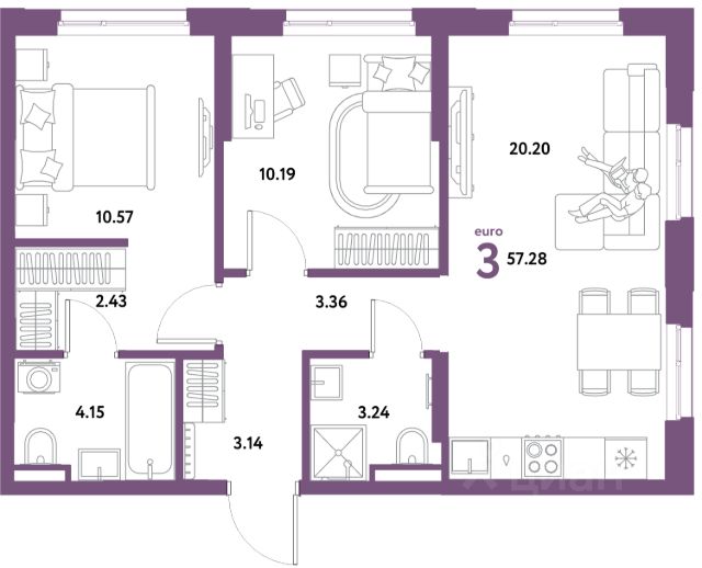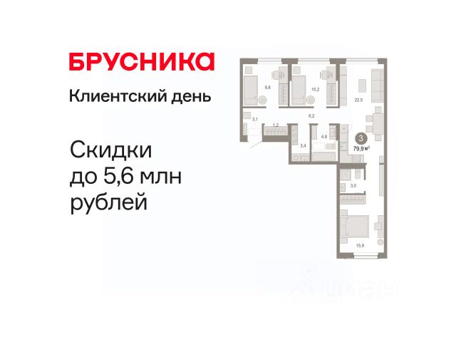 Квартира с кухней-гостиной и тремя спальнями в Октябрьском на Туре. Особенности планировки: вид во двор, гардеробная, лоджия, мастер-спальня, предчистовая отделка, разнесённые спальни. квартиры в нашей базе: ОКТ09-Ж3.2.2. Район Проект расположен на берегу реки, в одном из самых живописных и экологичных районов Тюмени. За последние годы облик района изменился. По соседству с индивидуальной застройкой выросли многоквартирные дома. При проектировании "Октябрьского на Туре" нашей приоритетной задачей стало сохранение природного ландшафта: мы постарались деликатно вписать в него современную архитектуру. Квартал удачно расположен с точки зрения дорожной инфраструктуры. На автомобиле путь до центра города составит 15 минут. Добраться до набережной и главных тюменских достопримечательностей можно и на общественном транспорте. В пешей доступности находится автобусная остановка. Проект По мастер-плану здесь будет восемь домов. Ядро застройки составляют замкнутые кварталы переменной этажности. Их высотность понижается по мере приближения к реке. На углах участка мы разместили башни-доминанты. Одной из достопримечательностей квартала станет парк на Туре — здесь появится зеленая зона протяженностью около 6 километров для пеших и велопрогулок. Смысловая ось квартала — широкая главная улица с высаженными вдоль неё высокими деревьями. Они создают тень и работают как шумо- и пылезащитные экраны. Это место сосредоточения основных пешеходных и транспортных потоков, на сторону которых мы ориентировали большинство коммерческих помещений. Отсюда жители могут свернуть на тихие соседские улицы и попасть на внутриквартальную площадь — ещё одну точку притяжения. #z5sccu