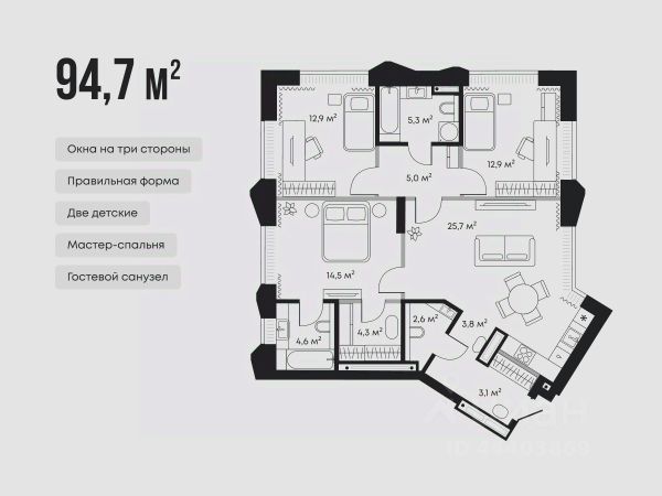 • ✅ Минимальная площадь: 58,8 м²
