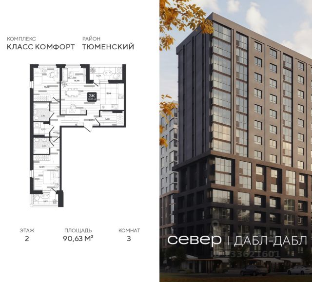 Продаётся квартира площадью 90.63 м2 в жилом комплексе "Дабл-Дабл". Квартира находится на 2 этаже дома, который будет введен в эксплуатацию во 2 квартале 2028 года. Жилая площадь квартиры 42.46 м2, площадь просторной кухни — 13.54 м2. Среди особенностей планировки — изолированные комнаты с окнами на одну сторону, 1 совмещённый санузел. Жилой комплекс "Дабл-Дабл" — это: проект комфорт-класса на Московском тракте дома высотой 15 этажей квартиры от 1-комнатных до 2-уровневых 1 очередь — срок сдачи IV кв. 2025 2 очередь — срок сдачи III кв. 2028 Окружение На границе жилого комплекса — живописный лес. Достаточно открыть окна, чтобы впустить в комнаты ароматы зелени, прохладу и чистый воздух. Благоустройство Юные жители оценят игровые площадки и воркаут-зоны. Любителям неспешных прогулок понравится 2-уровневый променад с панорамным видом и навесами. Лобби Помещения встречают дизайнерскими интерьерами с уютными лаунж-зонами, где удобно подождать курьера или просто сделать паузу перед возвращением домой. Колясочные Возвращайтесь налегке после прогулки с малышом — оставить коляску можно в специальном помещении на первом этаже. Кладовые Благодаря индивидуальным помещениям на техническом этаже сезонные и габаритные вещи будут на своём месте. 2-уровневые квартиры Просторная гостиная и кухня располагаются на первом этаже, спальня и кабинет — на втором. Почувствуйте, как жизнь выходит на новый уровень комфорта и приватности. Панорамное остекление Окна в пол наполняют комнаты светом и стирают границы между домом и природой. Встречайте рассветы или наслаждайтесь огнями вечернего города. Отделка Ровные стены, подготовленные полы и проведённые коммуникации — мы взяли на себя самые грязные и трудоёмкие этапы ремонта. Квартира станет чистым холстом, где легко создать интерьер в любом стиле.