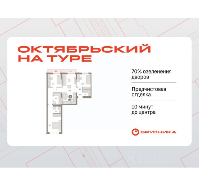 Квартира в счёт первоначального взноса по программе обмена. Квартира с кухней-гостиной и тремя спальнями в Октябрьском на Туре. Особенности планировки: вид во двор, лоджия, разнесённые спальни, предчистовая отделка, мастер-спальня. квартиры в нашей базе: ОКТ-08-5-5.4.6. Район Проект расположен на берегу реки, в одном из самых живописных и экологичных районов Тюмени. За последние годы облик района изменился. По соседству с индивидуальной застройкой выросли многоквартирные дома. При проектировании "Октябрьского на Туре" нашей приоритетной задачей стало сохранение природного ландшафта: мы постарались деликатно вписать в него современную архитектуру. Квартал удачно расположен с точки зрения дорожной инфраструктуры. На автомобиле путь до центра города составит 15 минут. Добраться до набережной и главных тюменских достопримечательностей можно и на общественном транспорте. В пешей доступности находится автобусная остановка. Проект По мастер-плану здесь будет восемь домов. Ядро застройки составляют замкнутые кварталы переменной этажности. Их высотность понижается по мере приближения к реке. На углах участка мы разместили башни-доминанты. Одной из достопримечательностей квартала станет парк на Туре — здесь появится зеленая зона протяженностью около 6 километров для пеших и велопрогулок. Смысловая ось квартала — широкая главная улица с высаженными вдоль неё высокими деревьями. Они создают тень и работают как шумо- и пылезащитные экраны. Это место сосредоточения основных пешеходных и транспортных потоков, на сторону которых мы ориентировали большинство коммерческих помещений. Отсюда жители могут свернуть на тихие соседские улицы и попасть на внутриквартальную площадь — ещё одну точку притяжения.Квартира в счёт первоначального взноса по программе обмена. #Z2d3zU