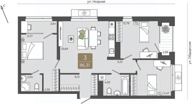 Квартира с кухней-гостиной и тремя спальнями в Октябрьском на Туре. Особенности планировки: балкон, вид во двор, гардеробная, мастер-спальня, постирочная, предчистовая отделка, разнесённые спальни. квартиры в нашей базе: ОКТ09-Ж6.4.1. Район Проект расположен на берегу реки, в одном из самых живописных и экологичных районов Тюмени. За последние годы облик района изменился. По соседству с индивидуальной застройкой выросли многоквартирные дома. При проектировании "Октябрьского на Туре" нашей приоритетной задачей стало сохранение природного ландшафта: мы постарались деликатно вписать в него современную архитектуру. Квартал удачно расположен с точки зрения дорожной инфраструктуры. На автомобиле путь до центра города составит 15 минут. Добраться до набережной и главных тюменских достопримечательностей можно и на общественном транспорте. В пешей доступности находится автобусная остановка. Проект По мастер-плану здесь будет восемь домов. Ядро застройки составляют замкнутые кварталы переменной этажности. Их высотность понижается по мере приближения к реке. На углах участка мы разместили башни-доминанты. Одной из достопримечательностей квартала станет парк на Туре — здесь появится зеленая зона протяженностью около 6 километров для пеших и велопрогулок. Смысловая ось квартала — широкая главная улица с высаженными вдоль неё высокими деревьями. Они создают тень и работают как шумо- и пылезащитные экраны. Это место сосредоточения основных пешеходных и транспортных потоков, на сторону которых мы ориентировали большинство коммерческих помещений. Отсюда жители могут свернуть на тихие соседские улицы и попасть на внутриквартальную площадь — ещё одну точку притяжения. #z6SBgT