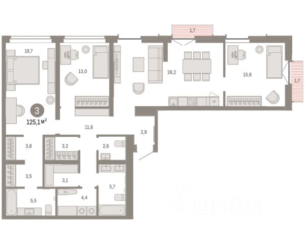 3-комн. квартира с предчистовой отделкой в ЖК "Республики 205" на 4 этаже. Общая площадь: 87.82 кв.м., жилая: 32.6 кв.м., площадь просторной кухни-гостиной: 22.4 кв.м. Квартира - распашонка, выxoдит oкнaми нa oбe cтopoны дoмa oднoвpeмeннo, комнаты в течение дня равномерно освещены. В квартире три балкона, два совмещенных санузла. Высота потолков 2.7 м. Купить квартиру можно с помощью программ покупки от застройщика Брусника: - ипотека по эксклюзивной ставке с помощью в получении положительного кредитного решения через сервис ипотечный брокер; - квартиры в рассрочку без процентов от застройщика Брусника; - обмен квартиры на новую. Получить одобрение ипотеки или рассрочку, а также осуществить обмен квартир можно онлайн. Дом монолитный, многоподъездный, переменной этажности, от 7 до 16 этажей. Квартира находится в 6-й секции высотой 7 этажей в корпусе 2. На этаже 6 квартир. В подъезде 1 грузовой лифт. Начало строительства - 1 квартал 2024 года. Окончание строительства - 2 квартал 2026 года. Оформление сделки по договору долевого участия. Район Проект расположен в границах улиц Пермякова, Энергетиков, Воровского и Республики. До центра города — 10 минут на машине. Рядом — автомобильная развязка на пересечении улиц Пермякова и Республики. В шаговой доступности есть школы, детские сады, поликлиники, крупный торговый центр, автовокзал и несколько скверов. Проект "Республики 205" — это проект комплексного развития территории, уникальный по своему наполнению. Переосмысляя бывшую территорию завода медицинского оборудования, мы создадим новое место силы — микрорайон, насыщенный деловой, развлекательной, рекреационной, игровой, образовательной и медицинской инфраструктурой. До каждого полезного сервиса здесь можно будет дойти за 15 минут. Локальными центрами "Республики 205" будут общественные пространства — скверы, парки, бульвары и площади. В границах нашего участка мы намерены разместить школу, рассчитанную на 1550 учеников, два детских сада на 300 мест и встроенный детский сад на 100 мест. В одном из цехов бывшего завода расположится креативный кластер "Кузница". Он станет площадкой для нескольких институций — галереи, лектория, книжного магазина-библиотеки, кинобара и точек креативного pop-up-ритейла. Пешеходные бульвары внутри района соединят между собой улицу ресторанов, детские и спортивные площадки, событийную площадь и летний кинотеатр. Идентификатор квартиры по базе застройщика: РСП-02-6-6. #2UFFiS