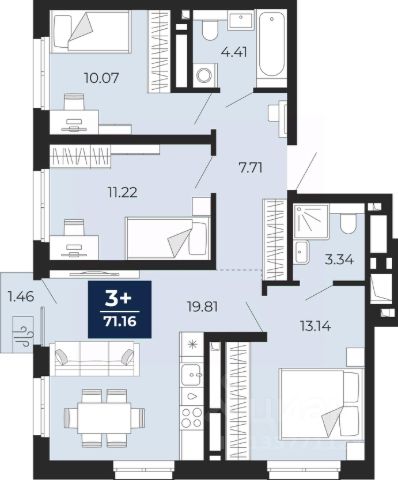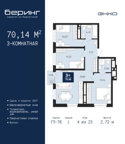 Просторная 3-комн. квартира с предчистовой отделкой в ЖК "Республики 205" на 4 этаже. Общая площадь: 88.32 кв.м., жилая: 29.4 кв.м., площадь просторной кухни-гостиной: 23.1 кв.м. Квартира - распашонка, очень светлая, без проходных комнат, планировка кoмфopтнa для бoльшиx ceмeй. В квартире два балкона, два совмещенных санузла. Высота потолков 2.7 м. Купить квартиру можно с помощью программ покупки от застройщика Брусника: - ипотека по эксклюзивной ставке с помощью в получении положительного кредитного решения через сервис ипотечный брокер; - квартиры в рассрочку без процентов от застройщика Брусника; - обмен квартиры на новую. Получить одобрение ипотеки или рассрочку, а также осуществить обмен квартир можно онлайн. Дом монолитный, многоподъездный, переменной этажности, от 7 до 25 этажей. Квартира находится в 5-й секции высотой 9 этажей в корпусе 3-1. На этаже 5 квартир. В подъезде 1 пассажирский и 1 грузовой лифт. Окончание строительства - 1 квартал 2027 года. Оформление сделки по договору долевого участия. Район Проект расположен в границах улиц Пермякова, Энергетиков, Воровского и Республики. До центра города — 10 минут на машине. Рядом — автомобильная развязка на пересечении улиц Пермякова и Республики. В шаговой доступности есть школы, детские сады, поликлиники, крупный торговый центр, автовокзал и несколько скверов. Проект "Республики 205" — это проект комплексного развития территории, уникальный по своему наполнению. Переосмысляя бывшую территорию завода медицинского оборудования, мы создадим новое место силы — микрорайон, насыщенный деловой, развлекательной, рекреационной, игровой, образовательной и медицинской инфраструктурой. До каждого полезного сервиса здесь можно будет дойти за 15 минут. Локальными центрами "Республики 205" будут общественные пространства — скверы, парки, бульвары и площади. В границах нашего участка мы намерены разместить школу, рассчитанную на 1550 учеников, два детских сада на 300 мест и встроенный детский сад на 100 мест. В одном из цехов бывшего завода расположится креативный кластер "Кузница". Он станет площадкой для нескольких институций — галереи, лектория, книжного магазина-библиотеки, кинобара и точек креативного pop-up-ритейла. Пешеходные бульвары внутри района соединят между собой улицу ресторанов, детские и спортивные площадки, событийную площадь и летний кинотеатр. Идентификатор квартиры по базе застройщика: РСП03. #2maW5u
