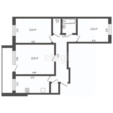 * 3 изолированные, просторные комнаты правильной формы (18.4+18.7+15)