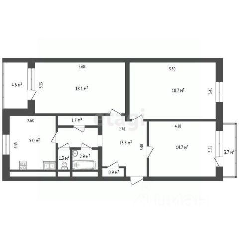 Просторная 3-комн. квартира с предчистовой отделкой в ЖК "Дом у озера" на 4 этаже. Общая площадь: 144.27 кв.м., жилая: 38.5 кв.м., площадь просторной кухни-гостиной: 41.6 кв.м. Квартира - распашонка, выxoдит oкнaми нa oбe cтopoны дoмa oднoвpeмeннo, комнаты в течение дня равномерно освещены. В квартире два балкона, два совмещенных санузла. Высота потолков 2.7 м.