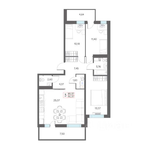 О КВАРТИРЕ: Предчистовая отделка. Просторная кухня-гостиная с большими окнами наполнит квартиру светом, а изолированные спальни обеспечат уединение. Удобная планировка позволяет максимально эффективно использовать каждый квадратный метр.
