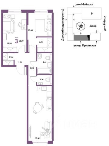 Квартира с кухней-гостиной и тремя спальнями в Октябрьском на Туре. Особенности планировки: мастер-спальня, предчистовая отделка. квартиры в нашей базе: ОКТ09-Ж6.5.5. Район Проект расположен на берегу реки, в одном из самых живописных и экологичных районов Тюмени. За последние годы облик района изменился. По соседству с индивидуальной застройкой выросли многоквартирные дома. При проектировании "Октябрьского на Туре" нашей приоритетной задачей стало сохранение природного ландшафта: мы постарались деликатно вписать в него современную архитектуру. Квартал удачно расположен с точки зрения дорожной инфраструктуры. На автомобиле путь до центра города составит 15 минут. Добраться до набережной и главных тюменских достопримечательностей можно и на общественном транспорте. В пешей доступности находится автобусная остановка. Проект По мастер-плану здесь будет восемь домов. Ядро застройки составляют замкнутые кварталы переменной этажности. Их высотность понижается по мере приближения к реке. На углах участка мы разместили башни-доминанты. Одной из достопримечательностей квартала станет парк на Туре — здесь появится зеленая зона протяженностью около 6 километров для пеших и велопрогулок. Смысловая ось квартала — широкая главная улица с высаженными вдоль неё высокими деревьями. Они создают тень и работают как шумо- и пылезащитные экраны. Это место сосредоточения основных пешеходных и транспортных потоков, на сторону которых мы ориентировали большинство коммерческих помещений. Отсюда жители могут свернуть на тихие соседские улицы и попасть на внутриквартальную площадь — ещё одну точку притяжения. #z555zo