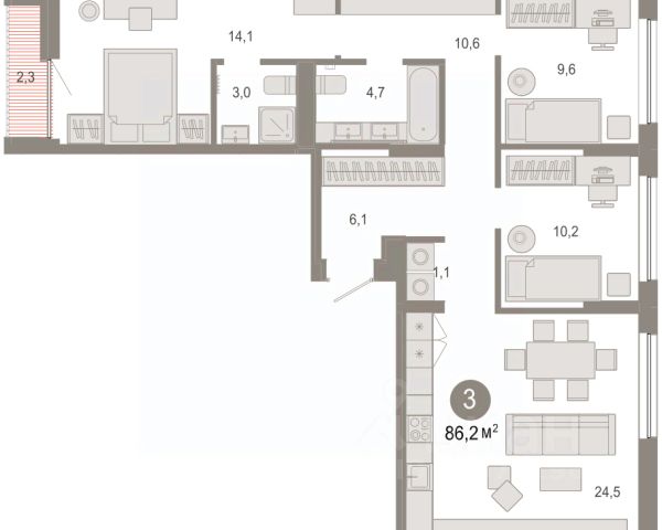 Квартира в счёт первоначального взноса по программе обмена. Квартира с кухней-гостиной и тремя спальнями в Октябрьском на Туре. Особенности планировки: гардеробная, вид во двор, разнесённые спальни, предчистовая отделка, мастер-спальня, балкон. квартиры в нашей базе: ОКТ09-Ж3.5.3. Район Проект расположен на берегу реки, в одном из самых живописных и экологичных районов Тюмени. За последние годы облик района изменился. По соседству с индивидуальной застройкой выросли многоквартирные дома. При проектировании "Октябрьского на Туре" нашей приоритетной задачей стало сохранение природного ландшафта: мы постарались деликатно вписать в него современную архитектуру. Квартал удачно расположен с точки зрения дорожной инфраструктуры. На автомобиле путь до центра города составит 15 минут. Добраться до набережной и главных тюменских достопримечательностей можно и на общественном транспорте. В пешей доступности находится автобусная остановка. Проект По мастер-плану здесь будет восемь домов. Ядро застройки составляют замкнутые кварталы переменной этажности. Их высотность понижается по мере приближения к реке. На углах участка мы разместили башни-доминанты. Одной из достопримечательностей квартала станет парк на Туре — здесь появится зеленая зона протяженностью около 6 километров для пеших и велопрогулок. Смысловая ось квартала — широкая главная улица с высаженными вдоль неё высокими деревьями. Они создают тень и работают как шумо- и пылезащитные экраны. Это место сосредоточения основных пешеходных и транспортных потоков, на сторону которых мы ориентировали большинство коммерческих помещений. Отсюда жители могут свернуть на тихие соседские улицы и попасть на внутриквартальную площадь — ещё одну точку притяжения.Квартира в счёт первоначального взноса по программе обмена. #Z5i5Em