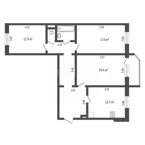 обеспечивает комфортное проживание для большой семьи. Комнаты по площади 12,13, 18 кв.м.