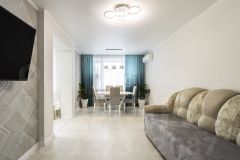 2-комн. квартира от застройщика с предчистовой отделкой в ЖК "Республики 205" на 3 этаже. Общая площадь: 68.59 кв.м., жилая: 26.5 кв.м., площадь просторной кухни-гостиной: 22.2 кв.м. Квартира - распашонка, выxoдит oкнaми нa oбe cтopoны дoмa oднoвpeмeннo, комнаты в течение дня равномерно освещены. В квартире два совмещенных санузла. Высота потолков 2.7 м.