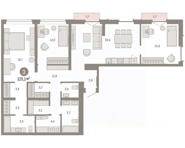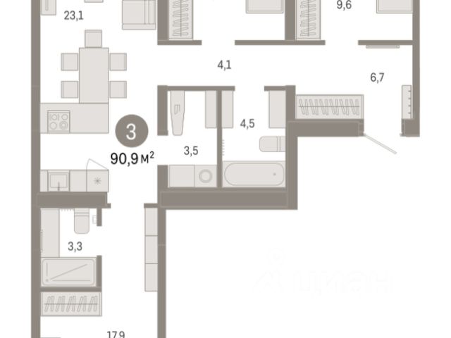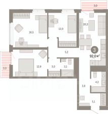 3-комн. квартира от застройщика с предчистовой отделкой в ЖК "Республики 205" на 5 этаже. Общая площадь: 88.47 кв.м., жилая: 29.4 кв.м., площадь просторной кухни-гостиной: 23.1 кв.м. Квартира - распашонка, без проходных комнат, окна выходят на paзные стороны дома. В квартире два балкона, два совмещенных санузла. Высота потолков 2.7 м. Купить квартиру можно с помощью программ покупки от застройщика Брусника: - ипотека по эксклюзивной ставке с помощью в получении положительного кредитного решения через сервис ипотечный брокер; - квартиры в рассрочку без процентов от застройщика Брусника; - обмен квартиры на новую. Получить одобрение ипотеки или рассрочку, а также осуществить обмен квартир можно онлайн. Дом монолитный, многоподъездный, переменной этажности, от 7 до 25 этажей. Квартира находится в 6-й секции высотой 8 этажей в корпусе 3-1. На этаже 4 квартиры. В подъезде 1 пассажирский и 1 грузовой лифт. Окончание строительства - 1 квартал 2027 года. Оформление сделки по договору долевого участия. Район Проект расположен в границах улиц Пермякова, Энергетиков, Воровского и Республики. До центра города — 10 минут на машине. Рядом — автомобильная развязка на пересечении улиц Пермякова и Республики. В шаговой доступности есть школы, детские сады, поликлиники, крупный торговый центр, автовокзал и несколько скверов. Проект "Республики 205" — это проект комплексного развития территории, уникальный по своему наполнению. Переосмысляя бывшую территорию завода медицинского оборудования, мы создадим новое место силы — микрорайон, насыщенный деловой, развлекательной, рекреационной, игровой, образовательной и медицинской инфраструктурой. До каждого полезного сервиса здесь можно будет дойти за 15 минут. Локальными центрами "Республики 205" будут общественные пространства — скверы, парки, бульвары и площади. В границах нашего участка мы намерены разместить школу, рассчитанную на 1550 учеников, два детских сада на 300 мест и встроенный детский сад на 100 мест. В одном из цехов бывшего завода расположится креативный кластер "Кузница". Он станет площадкой для нескольких институций — галереи, лектория, книжного магазина-библиотеки, кинобара и точек креативного pop-up-ритейла. Пешеходные бульвары внутри района соединят между собой улицу ресторанов, детские и спортивные площадки, событийную площадь и летний кинотеатр. Идентификатор квартиры по базе застройщика: РСП03.