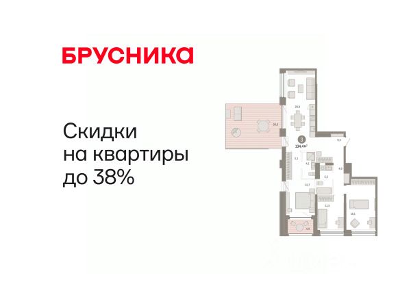 Квартира в счёт первоначального взноса по программе обмена. Информация по телефону, наши менеджеры вам все расскажут! Продается 3-комн. квартира с предчистовой отделкой в ЖК "Дом у озера" на 5 этаже. Общая площадь: 134.4 кв.м. Высота потолков 2.7 м. Дом монолитный, многоподъездный, переменной этажности, от 1 до 8 этажей. Квартира находится в 5-й секции высотой 8 этажей в корпусе 2. На этаже 5 квартир. В подъезде 1 грузовой лифт. Окончание строительства - 4 квартал 2025 года. Оформление сделки по договору долевого участия. Продаётся с паркингом и кладовой. Квартира с кухней-гостиной и тремя спальнями в Доме у озера. Особенности планировки: окна в пол, вид во двор, тёплая лоджия, лоджия, предчистовая отделка, мастер-спальня, терраса на крыше. квартиры в нашей базе: ДМУ-02-5-5.5.4. "Дом у озера" является продолжением "Европейского квартала". Он расположен в центре заречного района города. В 2030 году здесь появится квартал, состоящий из урбан-вилл, таунхаусов, секционных домов и башни. Вокруг уже сформирована необходимая инфраструктура: детские сады, школы, спортивный комплекс, продуктовые магазины, аптеки, кофейни, рестораны и салоны красоты. Путь до центра города занимает 7 минут на машине. Озеро Тихое — ценный рекреационный ресурс. Брусника вернула ему прежнее значение и сделала новой точкой притяжения для жителей микрорайона. Ключевым элементом концепции благоустройства стала вода. В каждой части квартала архитекторы нашли для нее свою форму. Вдоль пешеходных улиц разместили искусственные ручьи, на центральной площади — фонтан и дождевые сады. Основная точка притяжения жителей — озеро и выходящий на его сторону променад. Здесь мы организуем смотровые площадки и расположим летние террасы кафе и ресторанов. Тесную связь застройки с ландшафтом обеспечивает многоуровневое озеленение. Буфер из деревьев и кустарников по периметру квартала превращается в естественный ветрозащитный экран. Такое решение позволяет создать на территории "Дома у озера" комфортный микроклимат. Подъезды "Дома у озера" с прозрачными входными группами и большими лифтами. Для мест общего пользования архитекторы разработали новую интерьерную коллекцию, вдохновленную эклектичными восточными мотивами. В отделке сочетаются коричневый, желтый и белый цвета, повторяющие колористические решения фасадов. Декоративные перегородки, установленные в лобби, напоминают машрабию — элемент арабской архитектуры в виде узорной решетки. За счет мягкой мебели, многоуровневого освещения теплых оттенков и предметов декора (например, зеркал и картин) холлы воспринимаются как продолжение квартиры. #Z6wWVB