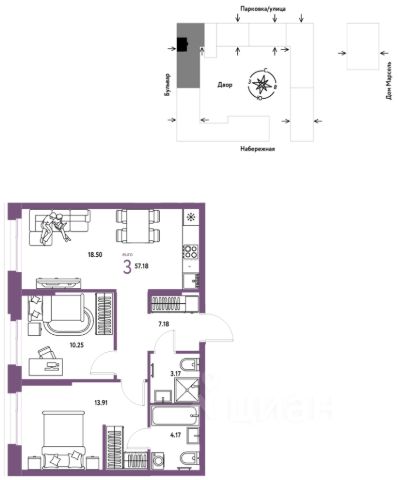 Квартира в счёт первоначального взноса по программе обмена. Информация по телефону, мы вам все подробно расскажем! 3-комн. квартира от застройщика с предчистовой отделкой в ЖК "Зарека" на 5 этаже. Общая площадь: 95.83 кв.м., жилая: 37.2 кв.м., площадь просторной кухни-гостиной: 23.1 кв.м. Квартира - распашонка, без проходных комнат, окна выходят на paзные стороны дома. В квартире три балкона, два совмещенных санузла. Высота потолков 2.7 м. Дом монолитный, многоподъездный, переменной этажности, от 6 до 16 этажей. Квартира находится в 5-й секции высотой 6 этажей в корпусе 5-2. На этаже 3 квартиры. В подъезде 1 пассажирский и 1 грузовой лифт. Окончание строительства - 4 квартал 2026 года. Оформление сделки по договору долевого участия. Продаётся с паркингом и кладовой. Квартира с кухней-гостиной и тремя спальнями в жилом районе "Зарека". Особенности планировки: разнесённые спальни, предчистовая отделка, мастер-спальня, постирочная, балкон. квартиры в нашей базе: ЗРК05.2-Ж5.5.3. Проект На планировочную структуру "Зареки" повлияла близость к автомобильному мосту Челюскинцев. Мы расположили жилые здания так, чтобы они постепенно удалялись от проезжей части. Приём напоминает лесенку: чем сильнее мост возвышается над участком застройки, тем дальше по отношению к нему стоят дома. Этот ступенчатый сдвиг позволил нам сформировать буфер между кварталами и оживлённой магистралью. Мы намерены высадить здесь высокие деревья и создать дополнительную защиту от дорожных шума и пыли. В границах нашего участка мы намерены разместить школу и два встроенных детских сада на 135 и 150 мест. Общественные пространства С севера на юг территорию будет пронизывать пешеходный бульвар. Мы мыслим это общественное пространство как главный центр притяжения. На нём будут сосредоточены основные детские игровые и спортивные зоны, места для встреч и спокойного отдыха. Он также сыграет роль мостика, ведущего к другим нашим проектам — "Европейскому кварталу" и "Дому у озера". Одна из базовых идей мастер-плана касается береговой линии. Сегодня озеленение этой территории носит стихииныи характер, а прямому доступу к Туре препятствует дамба. Мы хотим благоустроить пространства у воды и открыть их для людей. Архитекторы спроектировали систему многоярусных троп и спусков к реке, смотровые площадки и места для активного отдыха и пикников. #zwFeO3