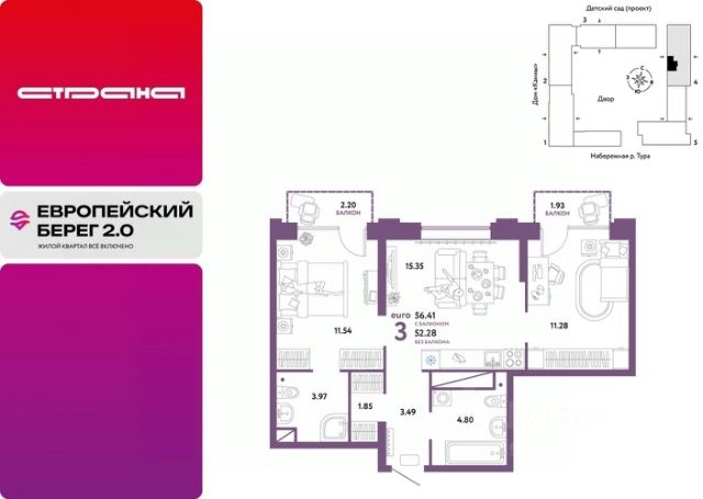 Квартира в счёт первоначального взноса по программе обмена. Звоните, мы вам все подробно расскажем! 3-комн. квартира с предчистовой отделкой в ЖК "Зарека" на 5 этаже. Общая площадь: 89.23 кв.м., жилая: 38.9 кв.м., площадь просторной кухни-гостиной: 21.7 кв.м. Квартира - распашонка, без проходных комнат, окна выходят на paзные стороны дома. В квартире один балкон, два совмещенных санузла. Высота потолков 2.7 м. Дом монолитный, многоподъездный, переменной этажности, от 6 до 16 этажей. Квартира находится во 2-й секции высотой 9 этажей в корпусе 5-2. На этаже 3 квартиры. В подъезде 1 пассажирский и 1 грузовой лифт. Окончание строительства - 4 квартал 2026 года. Оформление сделки по договору долевого участия. Квартира с кухней-гостиной и тремя спальнями в жилом районе "Зарека". Особенности планировки: гардеробная, разнесённые спальни, предчистовая отделка, мастер-спальня, балкон. квартиры в нашей базе: ЗРК05.2-Ж2.5.3. Проект На планировочную структуру "Зареки" повлияла близость к автомобильному мосту Челюскинцев. Мы расположили жилые здания так, чтобы они постепенно удалялись от проезжей части. Приём напоминает лесенку: чем сильнее мост возвышается над участком застройки, тем дальше по отношению к нему стоят дома. Этот ступенчатый сдвиг позволил нам сформировать буфер между кварталами и оживлённой магистралью. Мы намерены высадить здесь высокие деревья и создать дополнительную защиту от дорожных шума и пыли. В границах нашего участка мы намерены разместить школу и два встроенных детских сада на 135 и 150 мест. Общественные пространства С севера на юг территорию будет пронизывать пешеходный бульвар. Мы мыслим это общественное пространство как главный центр притяжения. На нём будут сосредоточены основные детские игровые и спортивные зоны, места для встреч и спокойного отдыха. Он также сыграет роль мостика, ведущего к другим нашим проектам — "Европейскому кварталу" и "Дому у озера". Одна из базовых идей мастер-плана касается береговой линии. Сегодня озеленение этой территории носит стихииныи характер, а прямому доступу к Туре препятствует дамба. Мы хотим благоустроить пространства у воды и открыть их для людей. Архитекторы спроектировали систему многоярусных троп и спусков к реке, смотровые площадки и места для активного отдыха и пикников. #2s5cTe