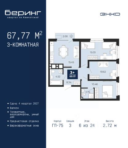 Продается 3-комн. квартира с предчистовой отделкой в ЖК "Беринг" на 6 этаже. Общая площадь: 73.8 кв.м., жилая: 35 кв.м., площадь просторной кухни-столовой: 18.8 кв.м. Квартира угловая, идеально подойдет любителям тишины и панорамных видов. В квартире одна лоджия, один совмещенный и один раздельный санузел. Высота потолков 2.75 м. Дом монолитный, многоподъездный, переменной этажности, от 9 до 22 этажей. Квартира находится в 73.6-й секции высотой 9 этажей в корпусе ГП-73. На этаже 5 квартир. В подъезде 1 пассажирский и 1 грузовой лифт. Окончание строительства - 4 квартал 2025 года. Оформление сделки по договору долевого участия. Подобно знаменитому исследователю, мы чувствуем себя первооткрывателями этой локации. Хотим показать новую суть места, сформировать для вас жизненный опыт, которого ещё не было. Беринг — район зелёного цвета. Беринг — район, который откроется вам с другой стороны. Впечатлит новым уровнем комфорта и качеством жизни. Беринг — открытие на карте города. Первый квартал расположен в районе Тура, в границах улиц: Камчатская Западносибирская Энтузиастов. Вокруг уже есть всё для того, чтобы ежедневная рутина была лишь частью жизни и не доставляла дискомфорта. Школы и детские сады, магазины и аптеки, поликлиника, места для семейного отдыха, пеших и велопрогулок, и даже рыбалки. Масштабное озеленение дворов — визитная карточка ЭНКО и ваш оазис спокойствия, чтобы отвлечься от повседневности. Раскидистые деревья, кустарники, травы и цветы — осталось остановиться, вдохнуть и расслабиться, глядя на эту природную красоту. Стилистика подъездов продолжает концепцию Беринга, вдохновлённого Камчаткой: сдержанный, но при этом впечатляющий дизайн соседствует с удобством и функциональностью. #ZmSfAm