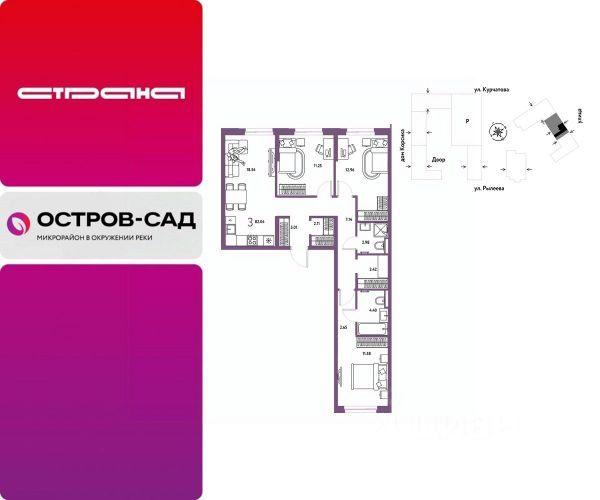 Продаётся квартира площадью 69.1 м2 в жилом комплексе "Айрис". Квартира находится на 6 этаже, жилая площадь квартиры 28.9 м2, площадь просторной кухни — 21 м2. Среди особенностей планировки — изолированные комнаты с окнами на одну сторону, 1 совмещённый санузел. Срок сдачи — III кв. 2027 Жилой комплекс "Айрис" — это: - фиджитал-квартал в Тюмени - дома высотой от 7 до 25 этажей - квартиры с системой "Умный дом" - цифровые технологии как элемент благоустройства Окружение В нескольких минутах ходьбы от дома — парк "Комарово" с волейбольной площадкой, открытым кинотеатром, зонами для барбекю и катком. Неподалеку от Airis находится центр иппотерапии, где можно покататься на лошадях и взять уроки верховой езды. На территории Airis появится собственный парк с прогулочными аллеями. Инфраструктура В 5-10 минутах от квартала открыты 2 детских сада и гимназия. На шопинг можно отправиться в торговые комплексы "Колумб" и "Кристалл" — они находятся недалеко от дома. Благоустройство Уютный двор — приватное пространство для жителей. В беседках можно будет почитать книгу в тишине, а в тени деревьев устроиться на пикник. На крыше многоуровневого паркинга будет лаунж-зона с кинотеатром, баскетбольная площадка и воркаут-пространство, где можно позаниматься с виртуальным тренером — достаточно отсканировать код. Лобби Интерьеры лобби выполнены в пастельных тонах с элементами фиджитал-решений. Для отдыха и ожидания гостей создана лаунж-зона. Также есть гостевые санузлы. Колясочные Возвращайтесь налегке после прогулки с малышом — оставить коляску можно в специальном помещении на первом этаже. Кладовые Для сезонных и габаритных вещей предусмотрены отдельные кладовые на цокольном этаже. В каждом помещении уже проведено электричество и выполнена стяжка пола. Паркинг На территории — два многоуровневых наземных паркинга. Один из них примыкает к домам — из него можно напрямую пройти в парадные. Планировки Планировки квартала — от компактной студии до сити-хауса с собственным палисадником — соответствуют любым жизненным сценариям. Можно выбрать квартиры с террасами и готовыми дизайнерскими интерьерами.