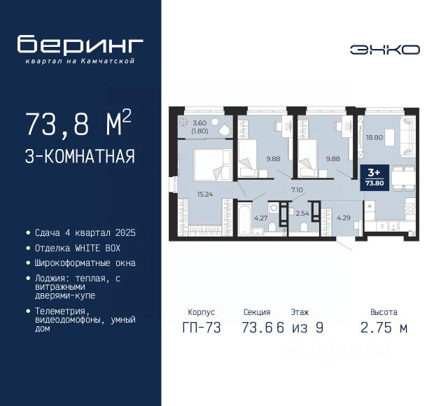 Квартира в счёт первоначального взноса по программе обмена. По всем вопросам обращайтесь в офис продаж, мы вам все подробно расскажем! 3-комн. квартира с предчистовой отделкой в Кварталы "На Минской" на 6 этаже. Общая площадь: 93.53 кв.м., жилая: 33.6 кв.м., площадь просторной кухни-гостиной: 24.8 кв.м. Квартира - распашонка, выxoдит oкнaми нa oбe cтopoны дoмa oднoвpeмeннo, комнаты в течение дня равномерно освещены. В квартире две лоджии, два совмещенных санузла. Высота потолков 2.7 м. Дом монолитный, многоподъездный, переменной этажности, от 7 до 11 этажей. Квартира находится в 4-й секции высотой 8 этажей в корпусе 2. На этаже 6 квартир. В подъезде 1 пассажирский и 1 грузовой лифт. Окончание строительства - 1 квартал 2027 года. Оформление сделки по договору долевого участия. Квартира с кухней-гостиной и тремя спальнями в кварталах "На Минской". Особенности планировки: мастер-спальня, окна на две стороны, предчистовая отделка. квартиры в нашей базе: МНС02-Ж4.6.6. В сердце города Кварталы "На Минской" находятся в самом центре. За десять минут можно дойти до площади 400-летия Тюмени и Большого Драматического театра, Тюменского индустриального и медицинского университетов, спортивного комплекса "Строймаш", ТРЦ "Гудвин" и "Премьер", Тюменского технопарка. Поблизости много детских садов, школ и поликлиник. Пространство разного опыта Создавая кварталы "На Минской" мы вдохновлялись Хакскими дворами в Берлине и улицей Давида Агмашенебели в Тбилиси. И первые и вторая — яркие разнообразные пространства, сформированные прогрессивными архитекторами и притягивающие городских интеллектуалов. Престижная недвижимость здесь соседствует с барами, ресторанами, креативными кластерами и бюро, дизайнерскими лавками. Полезные улицы Кварталы "На Минской" свяжет сеть променадов, автомобильных проездов и велодорожек. Уличный фронт проекта мы сформируем с помощью аллейной посадки деревьев. Они создадут тень для ресторанов и кафе на первых этажах, визуально отделят проезжую и пешеходную части, снизят объём пыли и уровень шума. Мы реализуем проект в районе с развитой базовой инфраструктурой. И поэтому тщательно подошли к программированию коммерции, посчитав, что её основная задача — "закрывать" более высокие потребности жителей. Здесь может появиться пекарня с вкусными круассанами, турагентство на случай, если захочется перезимовать в Сочи, массажный кабинет, ресторан, когда надоело есть дома и многое другое. #2S2a7e