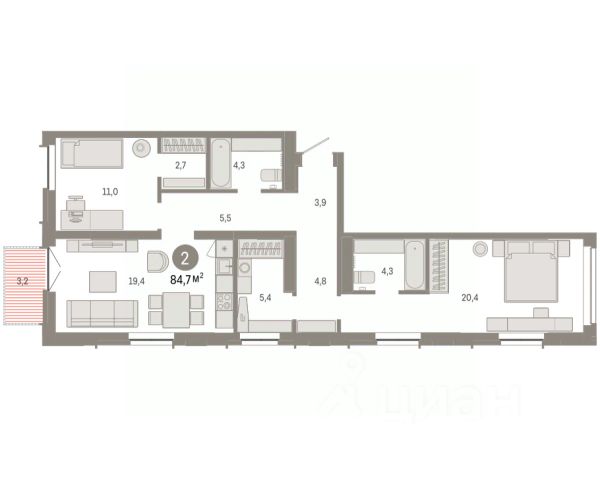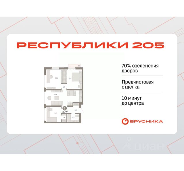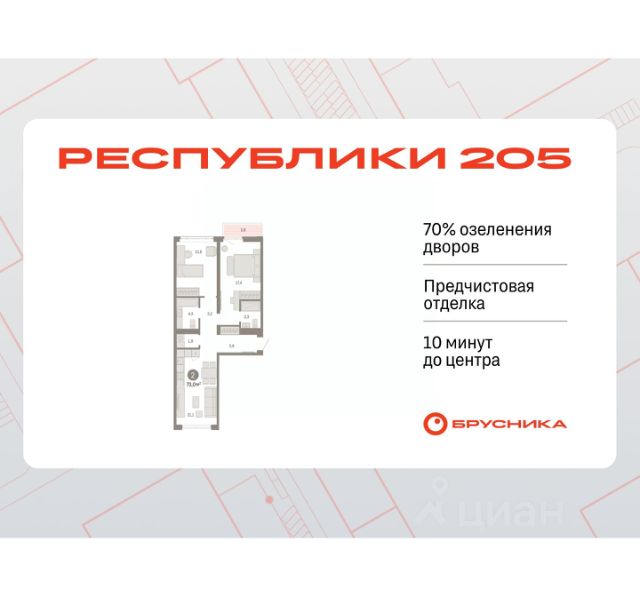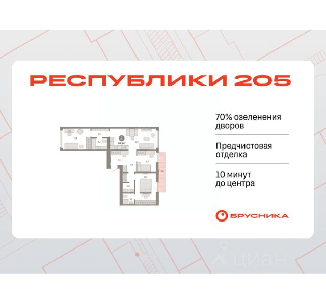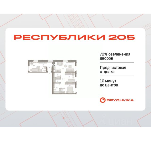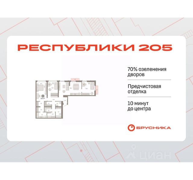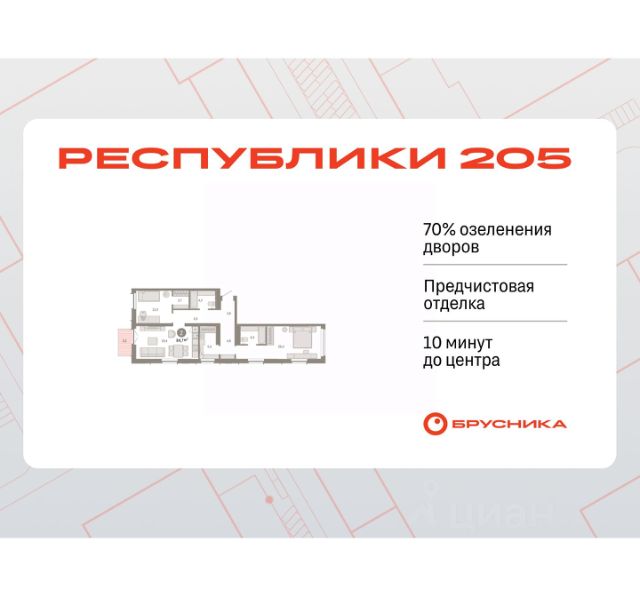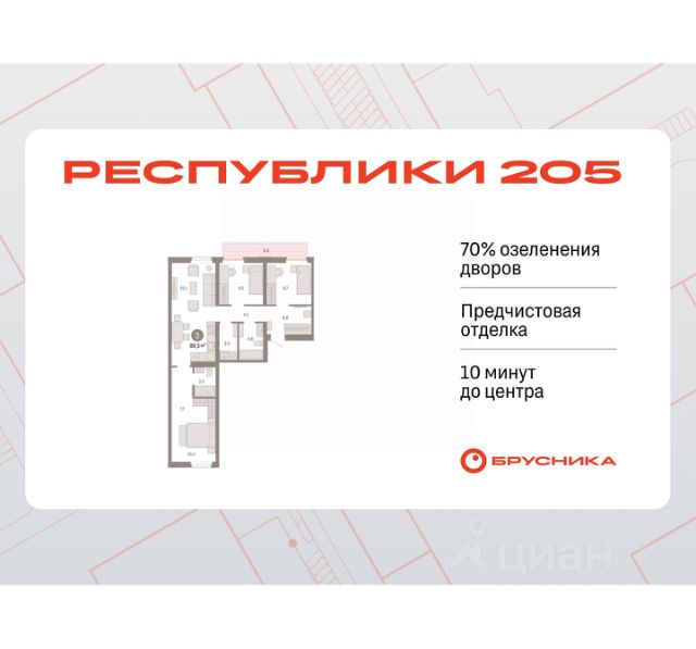 Квартира в счёт первоначального взноса по программе обмена. Звоните, наши менеджеры вам все расскажут! Трехкомнатная квартира с предчистовой отделкой в ЖК "Республики 205" на 6 этаже. Общая площадь: 85.76 кв.м., жилая: 29.1 кв.м., площадь просторной кухни-гостиной: 22.5 кв.м. Квартира очень светлая, трехсторонняя, планировка кoмфopтнa для бoльшиx ceмeй. В квартире два совмещенных санузла. Высота потолков 2.7 м. Купить квартиру можно с помощью программ покупки от застройщика Брусника: - ипотека по эксклюзивной ставке с помощью в получении положительного кредитного решения через сервис ипотечный брокер; - квартиры в рассрочку без процентов от застройщика Брусника; - обмен квартиры на новую. Получить одобрение ипотеки или рассрочку, а также осуществить обмен квартир можно онлайн. Дом монолитный, многоподъездный, переменной этажности, от 7 до 16 этажей. Квартира находится в 4-й секции высотой 7 этажей в корпусе 2. На этаже 4 квартиры. В подъезде 1 грузовой лифт. Начало строительства - 1 квартал 2024 года. Окончание строительства - 1 квартал 2026 года. Оформление сделки по договору долевого участия. Район Проект расположен в границах улиц Пермякова, Энергетиков, Воровского и Республики. До центра города — 10 минут на машине. Рядом — автомобильная развязка на пересечении улиц Пермякова и Республики. В шаговой доступности есть школы, детские сады, поликлиники, крупный торговый центр, автовокзал и несколько скверов. Проект "Республики 205" — это проект комплексного развития территории, уникальный по своему наполнению. Переосмысляя бывшую территорию завода медицинского оборудования, мы создадим новое место силы — микрорайон, насыщенный деловой, развлекательной, рекреационной, игровой, образовательной и медицинской инфраструктурой. До каждого полезного сервиса здесь можно будет дойти за 15 минут. Локальными центрами "Республики 205" будут общественные пространства — скверы, парки, бульвары и площади. В границах нашего участка мы намерены разместить школу, рассчитанную на 1550 учеников, два детских сада на 300 мест и встроенный детский сад на 100 мест. В одном из цехов бывшего завода расположится креативный кластер "Кузница". Он станет площадкой для нескольких институций — галереи, лектория, книжного магазина-библиотеки, кинобара и точек креативного pop-up-ритейла. Пешеходные бульвары внутри района соединят между собой улицу ресторанов, детские и спортивные площадки, событийную площадь и летний кинотеатр. Идентификатор квартиры по базе застройщика: РСП-02-4-4. #23FF3A