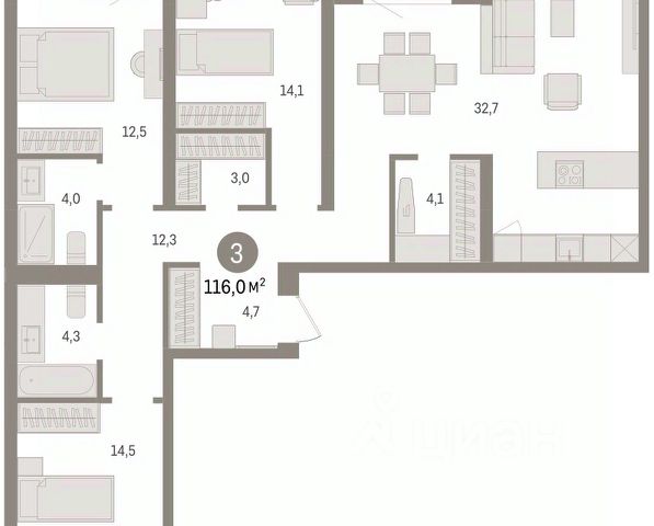 Квартира с кухней-гостиной и тремя спальнями в жилом районе "Речной порт". Особенности планировки: балкон, гардеробная, лоджия, мастер-спальня, предчистовая отделка, разнесённые спальни. квартиры в нашей базе: РПТ04-Ж3.6.2. Новый центр притяжения В основу концепции жилого района "Речной порт", архитекторы заложили две ключевые идеи: сохранение идентичности и "возвращение" городу реки. Территорию они планировочно разделили на южную и северную части. Южная зона будет напоминать классический европейский город с гармонично спроектированными улицами, уютными дворами и центральной площадью. В северной части предусмотрены пешеходные маршруты и зеленые зоны с активными площадками, магазинами и ресторанами, открывающими виды на реку Туру. Мировой опыт на берегу Туры Проект вдохновлён успешными примерами реновации, такими как Хафенсити в Гамбурге и Нордхавн в Копенгагене. Основное внимание уделяется развитию, включая интеграцию исторических артефактов, таких как старинные краны и 35-летний дуб, который станет символом и местом отдыха для жителей района, подчеркивая связь с культурным наследием. Дух места При разработке проекта анализируется контекст и история места, что важно для формирования стратегии и сохранения наследия. В "Речном порту" останутся несколько артефактов, среди которых два портальных крана — "Ганц" и "Альбрехт", произведённые в Венгрии в 1960-х годах. "Ганц" будет находиться в южной части, а "Альбрехт" — на краю речного порта. Также в проекте предусмотрены полуторатонный якорь и пароходные винты. В северной части сохранится 35-летний дуб, который был включён в мастер-план, вокруг которого спроектированы зоны отдыха. #Z5aegc