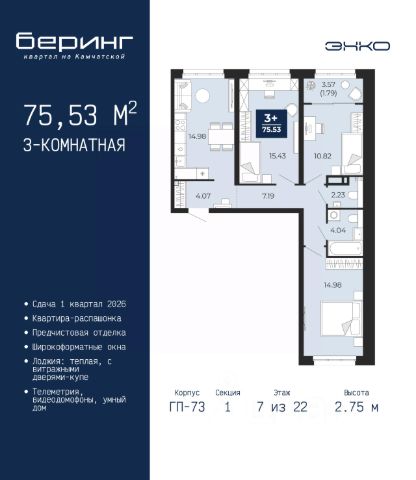 Просторная трехкомнатная квартира с предчистовой отделкой в Кварталы "На Минской" на 7 этаже. Общая площадь: 94.07 кв.м. Высота потолков 2.7 м. Дом монолитный, многоподъездный, переменной этажности, от 7 до 11 этажей. Квартира находится в 4-й секции высотой 8 этажей в корпусе 2. На этаже 6 квартир. В подъезде 1 пассажирский и 1 грузовой лифт. Окончание строительства - 1 квартал 2027 года. Оформление сделки по договору долевого участия. Квартира с кухней-гостиной и тремя спальнями в кварталах "На Минской". Особенности планировки: балкон, окна на две стороны, предчистовая отделка, разнесённые спальни. квартиры в нашей базе: МНС02-Ж4.7.5. В сердце города Кварталы "На Минской" находятся в самом центре. За десять минут можно дойти до площади 400-летия Тюмени и Большого Драматического театра, Тюменского индустриального и медицинского университетов, спортивного комплекса "Строймаш", ТРЦ "Гудвин" и "Премьер", Тюменского технопарка. Поблизости много детских садов, школ и поликлиник. Пространство разного опыта Создавая кварталы "На Минской" мы вдохновлялись Хакскими дворами в Берлине и улицей Давида Агмашенебели в Тбилиси. И первые и вторая — яркие разнообразные пространства, сформированные прогрессивными архитекторами и притягивающие городских интеллектуалов. Престижная недвижимость здесь соседствует с барами, ресторанами, креативными кластерами и бюро, дизайнерскими лавками. Полезные улицы Кварталы "На Минской" свяжет сеть променадов, автомобильных проездов и велодорожек. Уличный фронт проекта мы сформируем с помощью аллейной посадки деревьев. Они создадут тень для ресторанов и кафе на первых этажах, визуально отделят проезжую и пешеходную части, снизят объём пыли и уровень шума. Мы реализуем проект в районе с развитой базовой инфраструктурой. И поэтому тщательно подошли к программированию коммерции, посчитав, что её основная задача — "закрывать" более высокие потребности жителей. Здесь может появиться пекарня с вкусными круассанами, турагентство на случай, если захочется перезимовать в Сочи, массажный кабинет, ресторан, когда надоело есть дома и многое другое. #zSt8A1