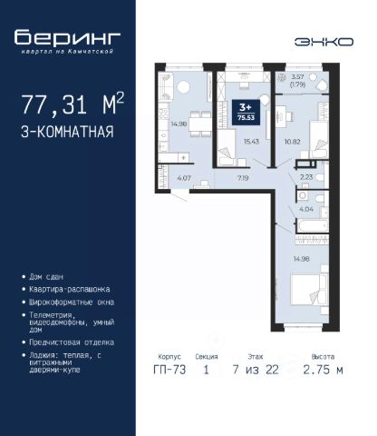 Трехкомнатная квартира с предчистовой отделкой в ЖК "Республики 205" на 7 этаже. Общая площадь: 108.16 кв.м. Высота потолков 2.7 м. Купить квартиру можно с помощью программ покупки от застройщика Брусника: - ипотека по эксклюзивной ставке с помощью в получении положительного кредитного решения через сервис ипотечный брокер; - квартиры в рассрочку без процентов от застройщика Брусника; - обмен квартиры на новую. Получить одобрение ипотеки или рассрочку, а также осуществить обмен квартир можно онлайн. Дом монолитный, многоподъездный, переменной этажности, от 7 до 16 этажей. Квартира находится в 4-й секции высотой 7 этажей в корпусе 2. На этаже 4 квартиры. В подъезде 1 грузовой лифт. Начало строительства - 1 квартал 2024 года. Окончание строительства - 2 квартал 2026 года. Оформление сделки по договору долевого участия. Район Проект расположен в границах улиц Пермякова, Энергетиков, Воровского и Республики. До центра города — 10 минут на машине. Рядом — автомобильная развязка на пересечении улиц Пермякова и Республики. В шаговой доступности есть школы, детские сады, поликлиники, крупный торговый центр, автовокзал и несколько скверов. Проект "Республики 205" — это проект комплексного развития территории, уникальный по своему наполнению. Переосмысляя бывшую территорию завода медицинского оборудования, мы создадим новое место силы — микрорайон, насыщенный деловой, развлекательной, рекреационной, игровой, образовательной и медицинской инфраструктурой. До каждого полезного сервиса здесь можно будет дойти за 15 минут. Локальными центрами "Республики 205" будут общественные пространства — скверы, парки, бульвары и площади. В границах нашего участка мы намерены разместить школу, рассчитанную на 1550 учеников, два детских сада на 300 мест и встроенный детский сад на 100 мест. В одном из цехов бывшего завода расположится креативный кластер "Кузница". Он станет площадкой для нескольких институций — галереи, лектория, книжного магазина-библиотеки, кинобара и точек креативного pop-up-ритейла. Пешеходные бульвары внутри района соединят между собой улицу ресторанов, детские и спортивные площадки, событийную площадь и летний кинотеатр. Идентификатор квартиры по базе застройщика: РСП-02-4-4. #z3fFz9