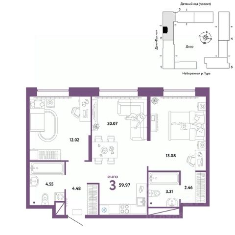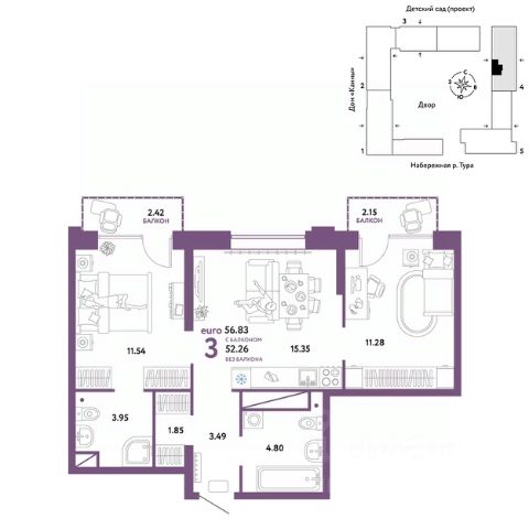 Квартира в счёт первоначального взноса по программе обмена. Звоните, наши менеджеры вам все расскажут! 3-комн. квартира с предчистовой отделкой в ЖК "Зарека" на 7 этаже. Общая площадь: 129.42 кв.м., жилая: 49.5 кв.м., площадь просторной кухни-гостиной: 48.4 кв.м. Угловая квартира, идеально подойдет любителям тишины и панорамных видов. В квартире два балкона, два совмещенных санузла. Высота потолков 2.7 м. Дом монолитный, многоподъездный, переменной этажности, от 6 до 16 этажей. Квартира находится в 1-й секции высотой 16 этажей в корпусе 5-2. На этаже 8 квартир. В подъезде 1 пассажирский и 1 грузовой лифт. Окончание строительства - 4 квартал 2026 года. Оформление сделки по договору долевого участия. Продаётся с паркингом. Квартира с кухней-гостиной и тремя спальнями в жилом районе "Зарека". Особенности планировки: гардеробная, разнесённые спальни, предчистовая отделка, мастер-спальня, балкон. квартиры в нашей базе: ЗРК05.2-Ж1.7.8. Проект На планировочную структуру "Зареки" повлияла близость к автомобильному мосту Челюскинцев. Мы расположили жилые здания так, чтобы они постепенно удалялись от проезжей части. Приём напоминает лесенку: чем сильнее мост возвышается над участком застройки, тем дальше по отношению к нему стоят дома. Этот ступенчатый сдвиг позволил нам сформировать буфер между кварталами и оживлённой магистралью. Мы намерены высадить здесь высокие деревья и создать дополнительную защиту от дорожных шума и пыли. В границах нашего участка мы намерены разместить школу и два встроенных детских сада на 135 и 150 мест. Общественные пространства С севера на юг территорию будет пронизывать пешеходный бульвар. Мы мыслим это общественное пространство как главный центр притяжения. На нём будут сосредоточены основные детские игровые и спортивные зоны, места для встреч и спокойного отдыха. Он также сыграет роль мостика, ведущего к другим нашим проектам — "Европейскому кварталу" и "Дому у озера". Одна из базовых идей мастер-плана касается береговой линии. Сегодня озеленение этой территории носит стихииныи характер, а прямому доступу к Туре препятствует дамба. Мы хотим благоустроить пространства у воды и открыть их для людей. Архитекторы спроектировали систему многоярусных троп и спусков к реке, смотровые площадки и места для активного отдыха и пикников. #Z4Cmsf