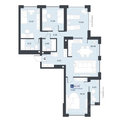 Двухуровневая квартира с кухней-гостиной и тремя спальнями в Октябрьском на Туре. Особенности планировки: балкон, вид во двор, гардеробная, двухуровневая, панорамное остекление, предчистовая отделка, терраса на крыше. квартиры в нашей базе: ОКТ-10-3-3.8.5. Район Проект расположен на берегу реки, в одном из самых живописных и экологичных районов Тюмени. За последние годы облик района изменился. По соседству с индивидуальной застройкой выросли многоквартирные дома. При проектировании "Октябрьского на Туре" нашей приоритетной задачей стало сохранение природного ландшафта: мы постарались деликатно вписать в него современную архитектуру. Квартал удачно расположен с точки зрения дорожной инфраструктуры. На автомобиле путь до центра города составит 15 минут. Добраться до набережной и главных тюменских достопримечательностей можно и на общественном транспорте. В пешей доступности находится автобусная остановка. Проект По мастер-плану здесь будет восемь домов. Ядро застройки составляют замкнутые кварталы переменной этажности. Их высотность понижается по мере приближения к реке. На углах участка мы разместили башни-доминанты. Одной из достопримечательностей квартала станет парк на Туре — здесь появится зеленая зона протяженностью около 6 километров для пеших и велопрогулок. Смысловая ось квартала — широкая главная улица с высаженными вдоль неё высокими деревьями. Они создают тень и работают как шумо- и пылезащитные экраны. Это место сосредоточения основных пешеходных и транспортных потоков, на сторону которых мы ориентировали большинство коммерческих помещений. Отсюда жители могут свернуть на тихие соседские улицы и попасть на внутриквартальную площадь — ещё одну точку притяжения. #ZwiCbe