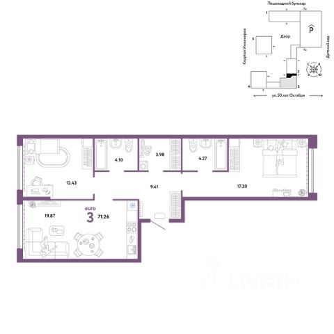 Новая квартира в ЖК "Сердце Сибири" напрямую от федерального застройщика "Страна Девелопмент". Финансовый партнер — банк "ДОМ.РФ". Продается 3комнатная квартира на 8 этаже от застройщика Страна Девелопмент. Площадь квартиры 72,42 кв. м. ЖК "Сердце Сибири" Жилой комплекс "Сердце Сибири" — это флагманский проект застройщика, в 4-х минутах от центра Тюмени. Философия комплекса воплощена в сочетании сибирских традиций и крепких натуральных материалов. ПРЕИМУЩЕСТВА - Квартал находится в деловом центре, неподалёку от исторической части Тюмени, в равной удалённости от всех районов. Торговые центры поблизости дают возможность быть в центре событий. В 10 минутах от жилого квартала расположены университеты, школы, детские сады. - В самом центре проходит пешеходный бульвар протяжённостью 640 м. с зелёными насаждениями и арт-объектами. На территории отдыха: праздничная площадь, обзорная площадка, памп-парк и др. - Основная идея благоустройства дворов — создание камерного, уютного пространства. Периметры кварталов образуют закрытые контуры, внутри которых расположились тихие дворы с местами для отдыха, игровыми и релакс-зонами. Благодаря сквозным парадным во дворе нет машин. Защита от посторонних, служба охраны и видеонаблюдение 24/7 — гарантия безопасности вашей семьи. ОТДЕЛКА Квартиры сдаются с предчистовой отделкой: произведена разводка электричества и отопления, выполнена стяжка пола, стены выровнены "под маяк", установлены розетки, выключатели и радиаторы. ДИЗАЙНЕРСКАЯ ОТДЕЛКА При покупке квартиры в ЖК "Сердце Сибири" можно включить стоимость ремонта в ипотеку. Пять вариантов на выбор: хлопковая нить, серый шторм, белый камень, шалфей, голубой вереск. СПОСОБЫ ПОКУПКИ Сотрудники "Страна Девелопмент" будут сопровождать вас на каждом этапе сделки, помогут получить одобрение по ипотеке или снизить ежемесячный платеж. - ипотека - рассрочка - с использованием материнского капитала -100% оплата наличными