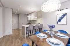 Представляем вам 3х комнатную квартиру с кухней-гостиной в жилом комплексе Новин. Просторная кухня гостиная, 2 спальные зоны, мастерская (можно под детскую), в коридоре 3 функциональных встроенных шкафа (1-входная зона, 2-обувной шкаф, 3-шкаф для хранения полотенец, постельного белья, пледов, подушек и т.д.), 2 санузла. Три окна выходят во двор, одно окно на другую сторону. В квартире установлены датчики теплого пола, кондиционер, счетчики на холодную и горячую воду, электроснабжение, отопление, система телеметрии - передача данных по потреблению воды, электричества, отопления автоматически передаются в управляющую компанию.