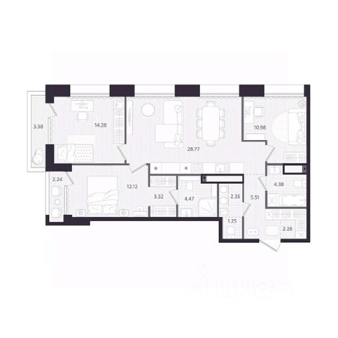 Продается 4-комн. квартира с предчистовой отделкой в ЖК "Республики 205" на 15 этаже. Общая площадь: 149.07 кв.м., жилая: 55.9 кв.м., площадь просторной кухни-гостиной: 34.9 кв.м. Квартира без проходных комнат, окна выходят нa три cтopoны дома. В квартире две лоджии, два совмещенных и один раздельный санузел. Терраса размером 8.7 кв.м. представляет собой роскошную зону отдыха для проведение вечеров в кругу семьи и друзей или организация вечеринок. Высота потолков 2.6 м.