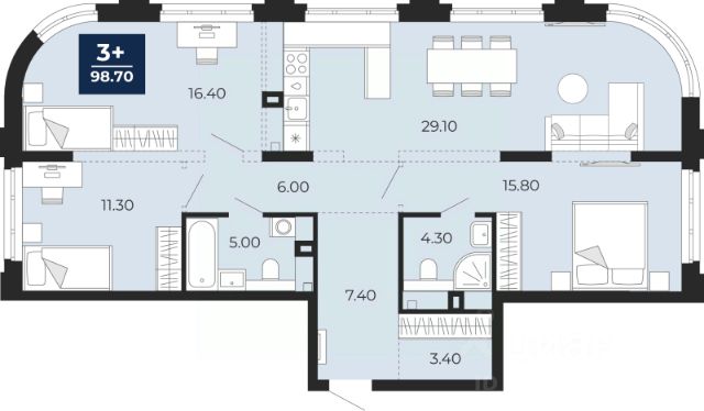 Продается 4-комн. квартира от застройщика с предчистовой отделкой в ЖК "Республики 205" на 7 этаже. Общая площадь: 138.81 кв.м., жилая: 52.6 кв.м., площадь просторной кухни-гостиной: 44.9 кв.м. Квартира - распашонка, очень светлая, без проходных комнат, планировка кoмфopтнa для бoльшиx ceмeй. В квартире одна лоджия, три совмещенных санузла. Высота потолков 2.6 м.