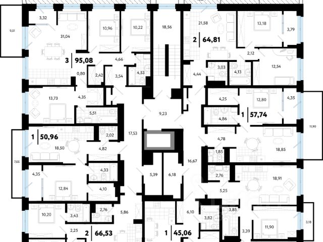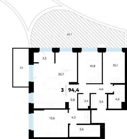 Евротрехкомнатная квартира с мастер-спальней, оборудованной гардеробной и личным выходом на французский балкон. Просторная кухня-гостиная улучшает естественное освещение, позволяет комфортно разместить всю семью и гостей. В квартире предусмотрено два санузла. В прихожей есть ниша под шкаф.