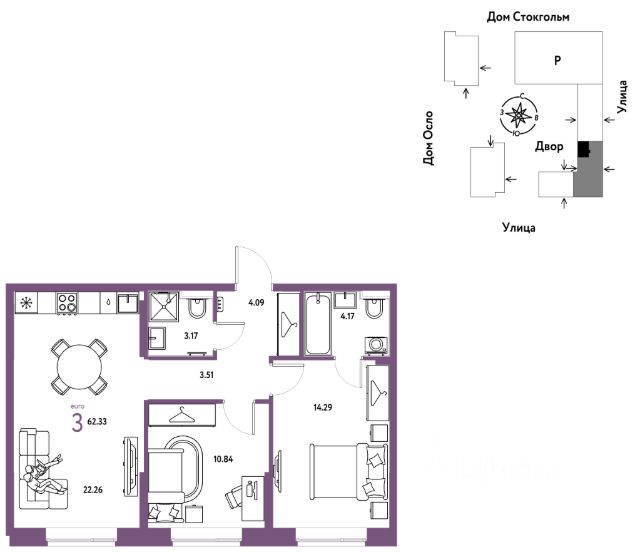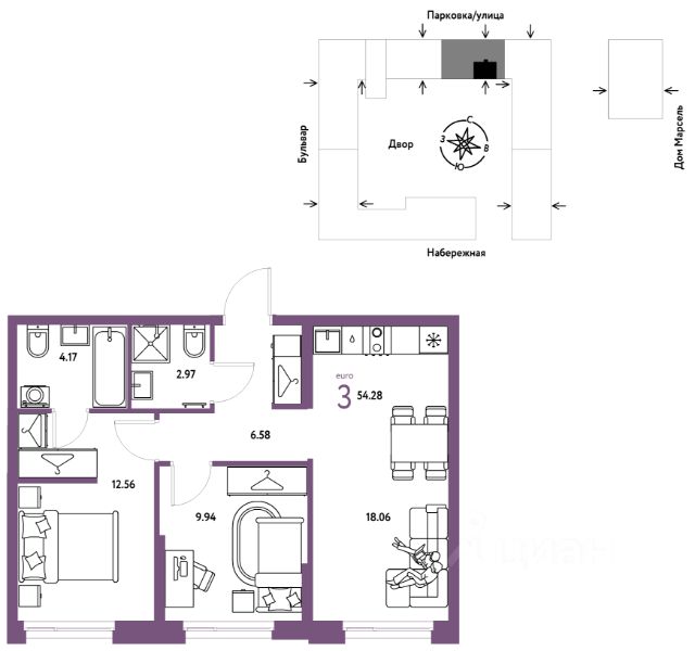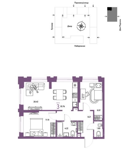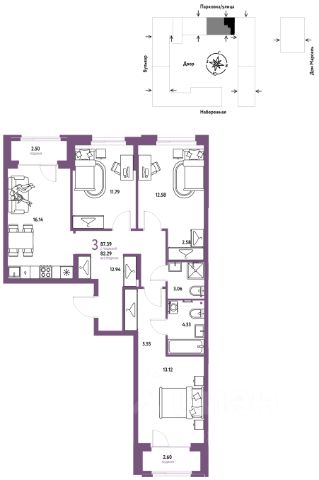 Квартира в счёт первоначального взноса по программе обмена. Звоните, наши менеджеры вам все расскажут! Просторная 3-комн. квартира с предчистовой отделкой в ЖК "Зарека" на 8 этаже. Общая площадь: 129.42 кв.м., жилая: 49.5 кв.м., площадь просторной кухни-гостиной: 48.4 кв.м. Угловая квартира, очень светлая, естественная вентиляция при открытии окон. В квартире два балкона, два совмещенных санузла. Высота потолков 2.7 м. Дом монолитный, многоподъездный, переменной этажности, от 6 до 16 этажей. Квартира находится в 1-й секции высотой 16 этажей в корпусе 5-2. На этаже 8 квартир. В подъезде 1 пассажирский и 1 грузовой лифт. Окончание строительства - 4 квартал 2026 года. Оформление сделки по договору долевого участия. Квартира с кухней-гостиной и тремя спальнями в жилом районе "Зарека". Особенности планировки: гардеробная, разнесённые спальни, предчистовая отделка, мастер-спальня, балкон. квартиры в нашей базе: ЗРК05.2-Ж1.8.8. Проект На планировочную структуру "Зареки" повлияла близость к автомобильному мосту Челюскинцев. Мы расположили жилые здания так, чтобы они постепенно удалялись от проезжей части. Приём напоминает лесенку: чем сильнее мост возвышается над участком застройки, тем дальше по отношению к нему стоят дома. Этот ступенчатый сдвиг позволил нам сформировать буфер между кварталами и оживлённой магистралью. Мы намерены высадить здесь высокие деревья и создать дополнительную защиту от дорожных шума и пыли. В границах нашего участка мы намерены разместить школу и два встроенных детских сада на 135 и 150 мест. Общественные пространства С севера на юг территорию будет пронизывать пешеходный бульвар. Мы мыслим это общественное пространство как главный центр притяжения. На нём будут сосредоточены основные детские игровые и спортивные зоны, места для встреч и спокойного отдыха. Он также сыграет роль мостика, ведущего к другим нашим проектам — "Европейскому кварталу" и "Дому у озера". Одна из базовых идей мастер-плана касается береговой линии. Сегодня озеленение этой территории носит стихииныи характер, а прямому доступу к Туре препятствует дамба. Мы хотим благоустроить пространства у воды и открыть их для людей. Архитекторы спроектировали систему многоярусных троп и спусков к реке, смотровые площадки и места для активного отдыха и пикников. #2SSCTw