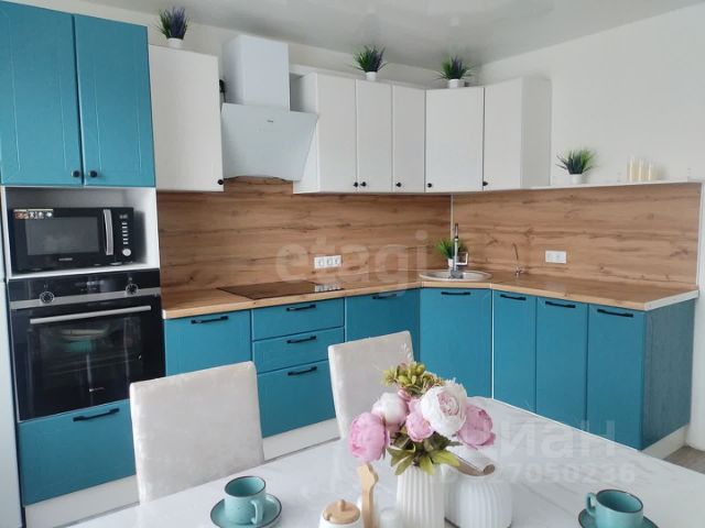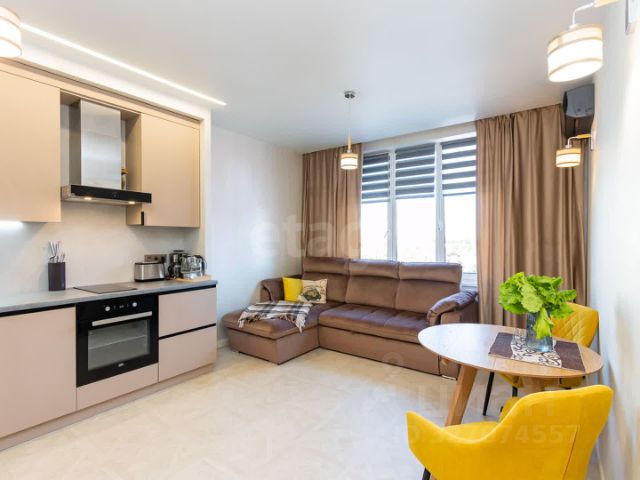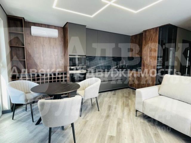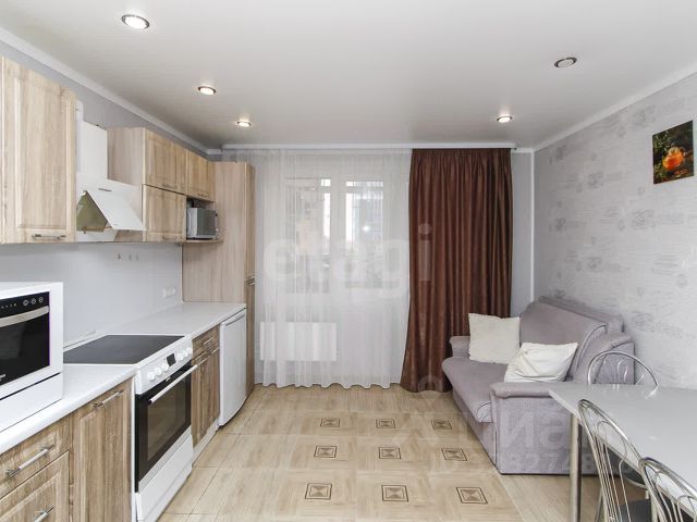 При продаже остается все как на фото. Кухня оборудована встроенной мебелью с варочной стеклокерамической панелью, духовым шкафом, микроволновой печью, кухонной вытяжкой, посудомоечной машиной, холодильником, фильтром очистки воды, установлен круглый раздвижной обеденный стол, 4 стула, барные стулья, на окнах тюль и плотные шторы.