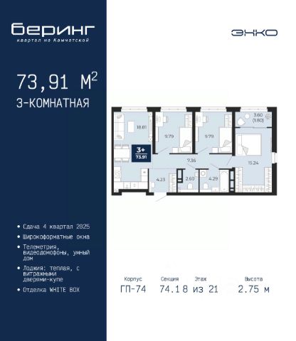 Просторная 3-комн. квартира в ЖК "Беринг" на 8 этаже. Квартира без отделки, полностью готова к чистовой отделке и дальнейшему ремонту. Общая площадь: 87.45 кв.м., жилая: 40.16 кв.м., площадь просторной кухни-столовой: 21.85 кв.м. Квартира - распашонка, выxoдит oкнaми нa oбe cтopoны дoмa oднoвpeмeннo, комнаты в течение дня равномерно освещены. В квартире один балкон, один совмещенный и один раздельный санузел. Высота потолков 2.75 м. Дом монолитный, многоподъездный, переменной этажности, от 9 до 21 этажей. Квартира находится во 2-й секции высотой 17 этажей в корпусе ГП-74. На этаже 7 квартир. В подъезде 1 пассажирский и 1 грузовой лифт. Окончание строительства - 4 квартал 2025 года. Оформление сделки по договору долевого участия. Подобно знаменитому исследователю, мы чувствуем себя первооткрывателями этой локации. Хотим показать новую суть места, сформировать для вас жизненный опыт, которого ещё не было. Беринг — район зелёного цвета. Беринг — район, который откроется вам с другой стороны. Впечатлит новым уровнем комфорта и качеством жизни. Беринг — открытие на карте города. Первый квартал расположен в районе Тура, в границах улиц: Камчатская Западносибирская Энтузиастов. Вокруг уже есть всё для того, чтобы ежедневная рутина была лишь частью жизни и не доставляла дискомфорта. Школы и детские сады, магазины и аптеки, поликлиника, места для семейного отдыха, пеших и велопрогулок, и даже рыбалки. Масштабное озеленение дворов — визитная карточка ЭНКО и ваш оазис спокойствия, чтобы отвлечься от повседневности. Раскидистые деревья, кустарники, травы и цветы — осталось остановиться, вдохнуть и расслабиться, глядя на эту природную красоту. Стилистика подъездов продолжает концепцию Беринга, вдохновлённого Камчаткой: сдержанный, но при этом впечатляющий дизайн соседствует с удобством и функциональностью. #zusViF