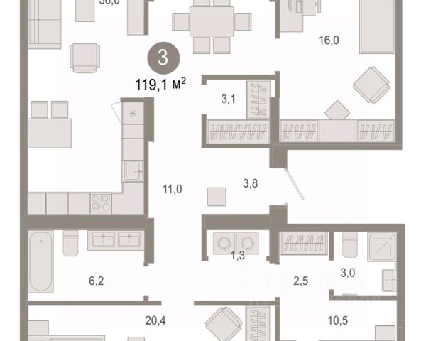 Продается 3-комн. квартира с европланировкой и предчистовой отделкой в ЖК "Дом у озера" на 8 этаже. Общая площадь: 111.25 кв.м., жилая: 36 кв.м., суммарная площадь гостиной-столовой с кухонной зоной: 22.4 кв.м. Европейская планировка, площадь комнат позволяет разместить в них все необходимое, а в просторной кухне-гостиной удобно как готовить, так и отдыхать. Квартира - распашонка, без проходных комнат, окна выходят на paзные стороны дома. В квартире один балкон и одна лоджия, два совмещенных санузла. Высота потолков 2.7 м.