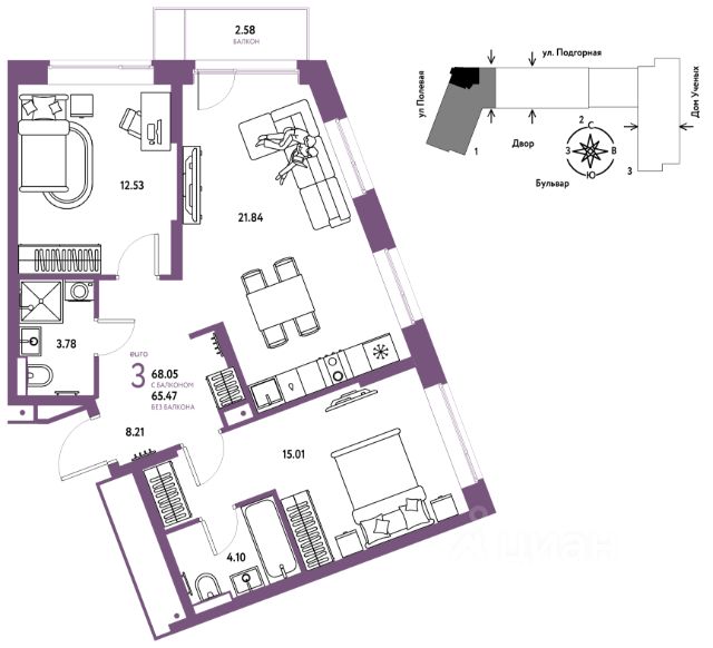 Квартира с кухней-гостиной и тремя спальнями в Октябрьском на Туре. Особенности планировки: предчистовая отделка, рабочий кабинет, разнесённые спальни, тёплая лоджия. квартиры в нашей базе: ОКТ-08-1-1.9.1. Район Проект расположен на берегу реки, в одном из самых живописных и экологичных районов Тюмени. За последние годы облик района изменился. По соседству с индивидуальной застройкой выросли многоквартирные дома. При проектировании "Октябрьского на Туре" нашей приоритетной задачей стало сохранение природного ландшафта: мы постарались деликатно вписать в него современную архитектуру. Квартал удачно расположен с точки зрения дорожной инфраструктуры. На автомобиле путь до центра города составит 15 минут. Добраться до набережной и главных тюменских достопримечательностей можно и на общественном транспорте. В пешей доступности находится автобусная остановка. Проект По мастер-плану здесь будет восемь домов. Ядро застройки составляют замкнутые кварталы переменной этажности. Их высотность понижается по мере приближения к реке. На углах участка мы разместили башни-доминанты. Одной из достопримечательностей квартала станет парк на Туре — здесь появится зеленая зона протяженностью около 6 километров для пеших и велопрогулок. Смысловая ось квартала — широкая главная улица с высаженными вдоль неё высокими деревьями. Они создают тень и работают как шумо- и пылезащитные экраны. Это место сосредоточения основных пешеходных и транспортных потоков, на сторону которых мы ориентировали большинство коммерческих помещений. Отсюда жители могут свернуть на тихие соседские улицы и попасть на внутриквартальную площадь — ещё одну точку притяжения. #z62BfD