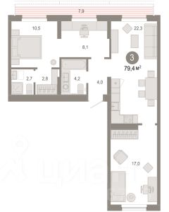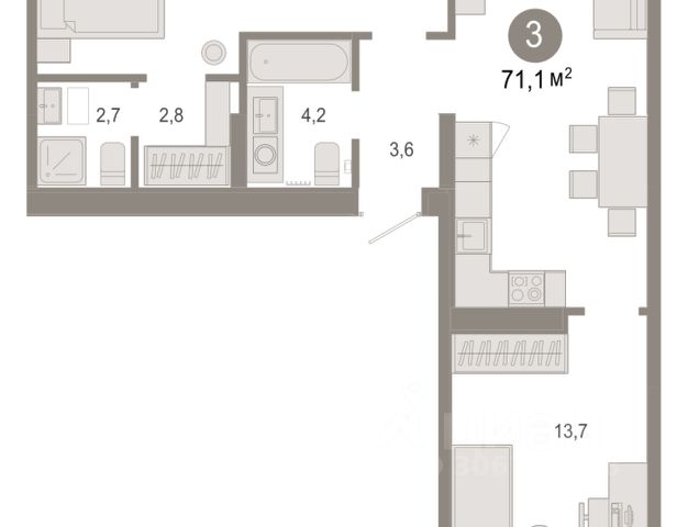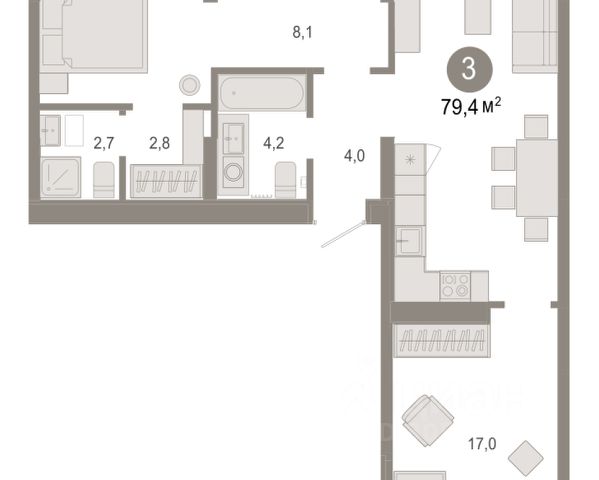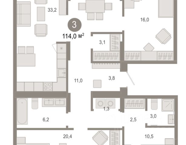 Квартира с кухней-гостиной и тремя спальнями в Октябрьском на Туре. Особенности планировки: лоджия, мастер-спальня, постирочная, свободная планировка. квартиры в нашей базе: ОКТ-08-6-6.9.8. Район Проект расположен на берегу реки, в одном из самых живописных и экологичных районов Тюмени. За последние годы облик района изменился. По соседству с индивидуальной застройкой выросли многоквартирные дома. При проектировании "Октябрьского на Туре" нашей приоритетной задачей стало сохранение природного ландшафта: мы постарались деликатно вписать в него современную архитектуру. Квартал удачно расположен с точки зрения дорожной инфраструктуры. На автомобиле путь до центра города составит 15 минут. Добраться до набережной и главных тюменских достопримечательностей можно и на общественном транспорте. В пешей доступности находится автобусная остановка. Проект По мастер-плану здесь будет восемь домов. Ядро застройки составляют замкнутые кварталы переменной этажности. Их высотность понижается по мере приближения к реке. На углах участка мы разместили башни-доминанты. Одной из достопримечательностей квартала станет парк на Туре — здесь появится зеленая зона протяженностью около 6 километров для пеших и велопрогулок. Смысловая ось квартала — широкая главная улица с высаженными вдоль неё высокими деревьями. Они создают тень и работают как шумо- и пылезащитные экраны. Это место сосредоточения основных пешеходных и транспортных потоков, на сторону которых мы ориентировали большинство коммерческих помещений. Отсюда жители могут свернуть на тихие соседские улицы и попасть на внутриквартальную площадь — ещё одну точку притяжения. #ZzDuvc