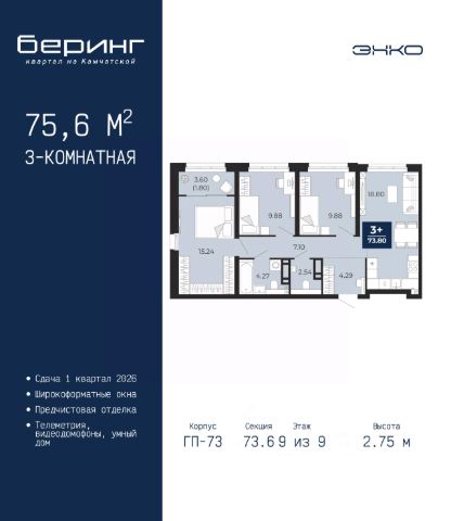 Просторная 3-комн. квартира с предчистовой отделкой в ЖК "Республики 205" на 9 этаже. Общая площадь: 76.65 кв.м. Высота потолков 2.7 м. Купить квартиру можно с помощью программ покупки от застройщика Брусника: - ипотека по эксклюзивной ставке с помощью в получении положительного кредитного решения через сервис ипотечный брокер; - квартиры в рассрочку без процентов от застройщика Брусника; - обмен квартиры на новую. Получить одобрение ипотеки или рассрочку, а также осуществить обмен квартир можно онлайн. Дом монолитный, многоподъездный, переменной этажности, от 7 до 16 этажей. Квартира находится в 1-й секции высотой 9 этажей в корпусе 2. На этаже 10 квартир. В подъезде 1 грузовой лифт. Начало строительства - 1 квартал 2024 года. Окончание строительства - 1 квартал 2026 года. Оформление сделки по договору долевого участия. Район Проект расположен в границах улиц Пермякова, Энергетиков, Воровского и Республики. До центра города — 10 минут на машине. Рядом — автомобильная развязка на пересечении улиц Пермякова и Республики. В шаговой доступности есть школы, детские сады, поликлиники, крупный торговый центр, автовокзал и несколько скверов. Проект "Республики 205" — это проект комплексного развития территории, уникальный по своему наполнению. Переосмысляя бывшую территорию завода медицинского оборудования, мы создадим новое место силы — микрорайон, насыщенный деловой, развлекательной, рекреационной, игровой, образовательной и медицинской инфраструктурой. До каждого полезного сервиса здесь можно будет дойти за 15 минут. Локальными центрами "Республики 205" будут общественные пространства — скверы, парки, бульвары и площади. В границах нашего участка мы намерены разместить школу, рассчитанную на 1550 учеников, два детских сада на 300 мест и встроенный детский сад на 100 мест. В одном из цехов бывшего завода расположится креативный кластер "Кузница". Он станет площадкой для нескольких институций — галереи, лектория, книжного магазина-библиотеки, кинобара и точек креативного pop-up-ритейла. Пешеходные бульвары внутри района соединят между собой улицу ресторанов, детские и спортивные площадки, событийную площадь и летний кинотеатр. Идентификатор квартиры по базе застройщика: РСП-02-1-1. #zs5WDz